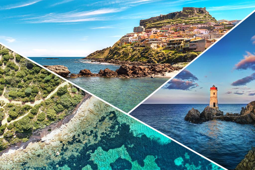 En Sardaigne, une grande partie des paysages naturels ont conservé leur charme authentique, sauvage et paisible, uniquement perturbé par le murmure de la brise qui souffle et le cri des oiseaux. Commencez votre circuit en Sardaigne par la découverte des paysages côtiers, ces lieux où les montagnes verdoyantes et la mer turquoise se rencontrent dans une belle harmonie de couleurs. À la pointe nord du pays, les rochers taillés par le vent et la mer ont formé d’étonnantes figures, dont la fascinante sculpture naturelle du Cap de l’Ours. À l’ouest, la Rivière de Corail est une succession de falaises au creux desquelles se nichent de petites criques.