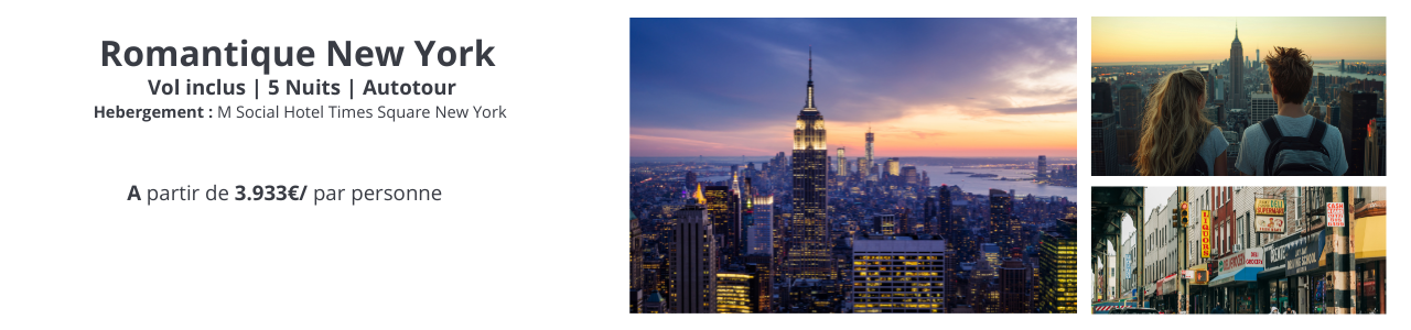 Plongez dans l’univers envoûtant de New York, une ville où l’effervescence urbaine rencontre la douceur d’un romantisme intemporel. Ce séjour, minutieusement conçu pour les couples en quête d’émotions fortes et de moments d’intimité, vous invite à redécouvrir la Grosse Pomme sous un angle nouveau. Dans un décor où se mêlent modernité, histoire et art de vivre, laissez-vous surprendre par des activités uniques qui rythmeront vos journées et sublimeront votre expérience.