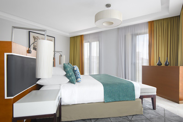 Chambres spacieuses avec balcon ou terrasse, climatisation, minibar, coffre-fort, télévision satellite.
