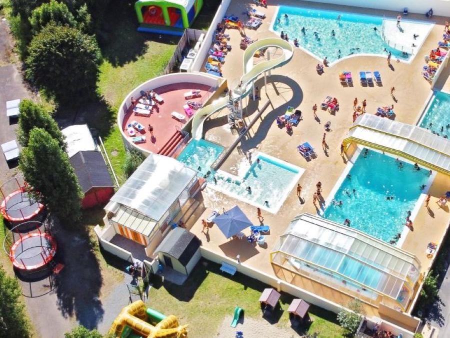 Infos supplémentaires sur l'espace aquatique : Le parc aquatique du camping est ouvert durant toute la saison de mai à septembre. Il comprend 1 grande piscine couverte avec abri rétractable et chauffée durant toute la saison, 1 belle piscine à pente douce non couverte chauffée en juillet et aout, 2 toboggans aquatiques, 1 pataugeoire pour enfants et 2 bains à bulles couverts (jacuzzi). Pour des raisons d'hygiène et de sécurité dans les bassins de natation et sur l'ensemble du parc aquatique (intérieur et extérieur), seuls les maillots de bain de natation courts et réglementaires (1 ou 2 pièces) sont les seuls autorisés sur le complexe aquatique (intérieur et extérieur) y compris dans les piscines. Les shorts de bains, les vêtements amples et longs sont formellement interdits dans les bassins de natation et sur l'ensemble du parc aquatique intérieur et extérieur. Les slips de bain ou les boxers de bain sont obligatoires pour les hommes pour accéder au complexe aquatique. Les maillots de bain de natation courts et réglementaires sont les seuls acceptés pour les femmes, à savoir, les maillots de natation courts et réglementaires d' 1 pièce ou de 2 pièces. Le parc aquatique (intérieur et extérieur y compris dans les bassins de natation) ne sera pas autorisé aux personnes (homme ou femme) portant un maillot de bain long et non réglementaire. Le port du bracelet du camping est obligatoire pour accéder au complexe aquatique du camping.