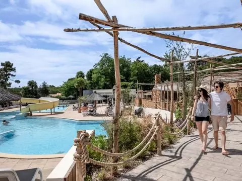 Tu cherches un endroit où tu peux vraiment te détendre avec ta famille ? Alors le Flower Camping Au Bois des Biches est exactement ce qu'il te faut. Situé à seulement 4,5 km de la côte atlantique, ce camping 4 étoiles tranquille est niché dans une magnifique forêt de pins en Vendée. Une atmosphère proche de la nature t'attend ici, combinée à de superbes activités, un grand parc aquatique et tout ce dont tu as besoin pour passer des vacances relaxantes en famille.