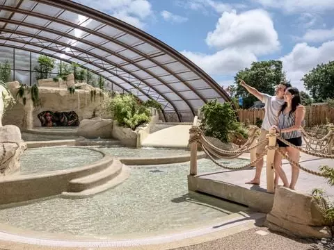 La Source, notre espace aquatique de 500 m² accueille les plus petits dans un décor inspiré des légendes du Bois des Biches. Rochers enchantés, jets d'eau malicieux et brume magique composent un décor féerique, pensé pour émerveiller les enfants tout en rassurant les parents. Un abri découvrable permet de profiter du soleil ou de s'amuser à l'abri selon la météo.