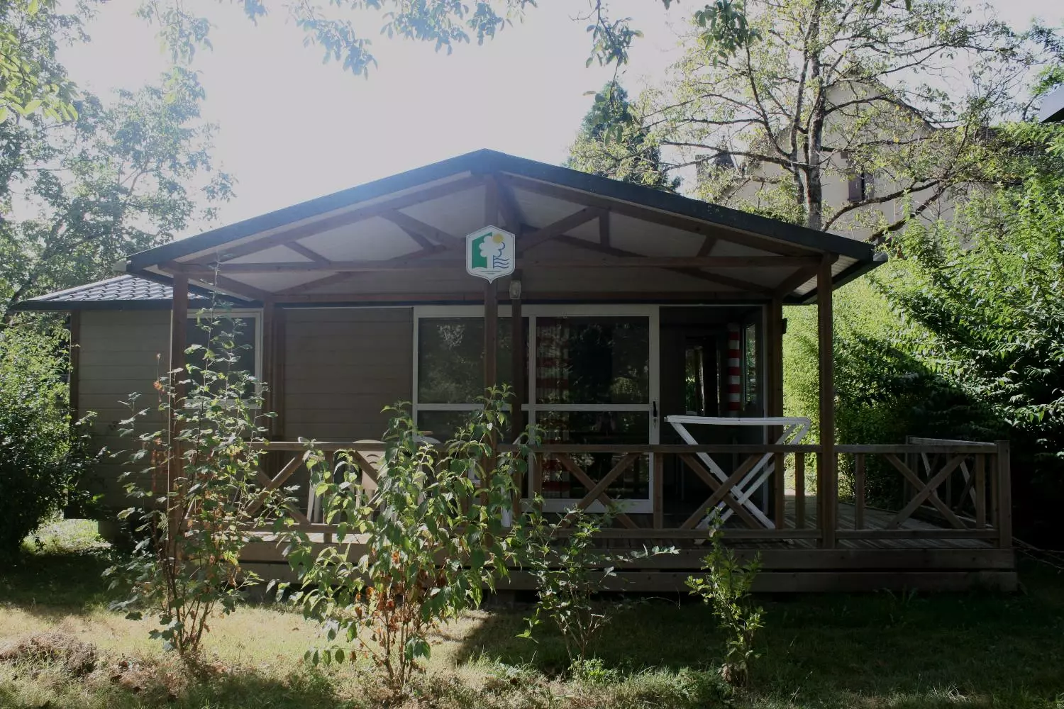 Le chalet comprend une cuisine équipée avec réfrigérateur, micro-ondes, cafetière Expresso et d'un kit cuisine. Le logement dispose également d'une télévision, d'un salon de jardin et de 2 bains de soleil.