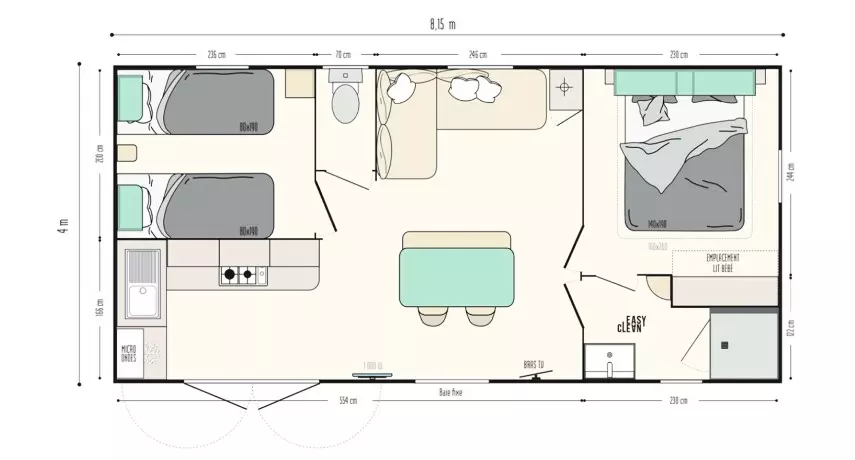 Mobil Home PMR Saule 3 Pièces 4 Personnes avec :