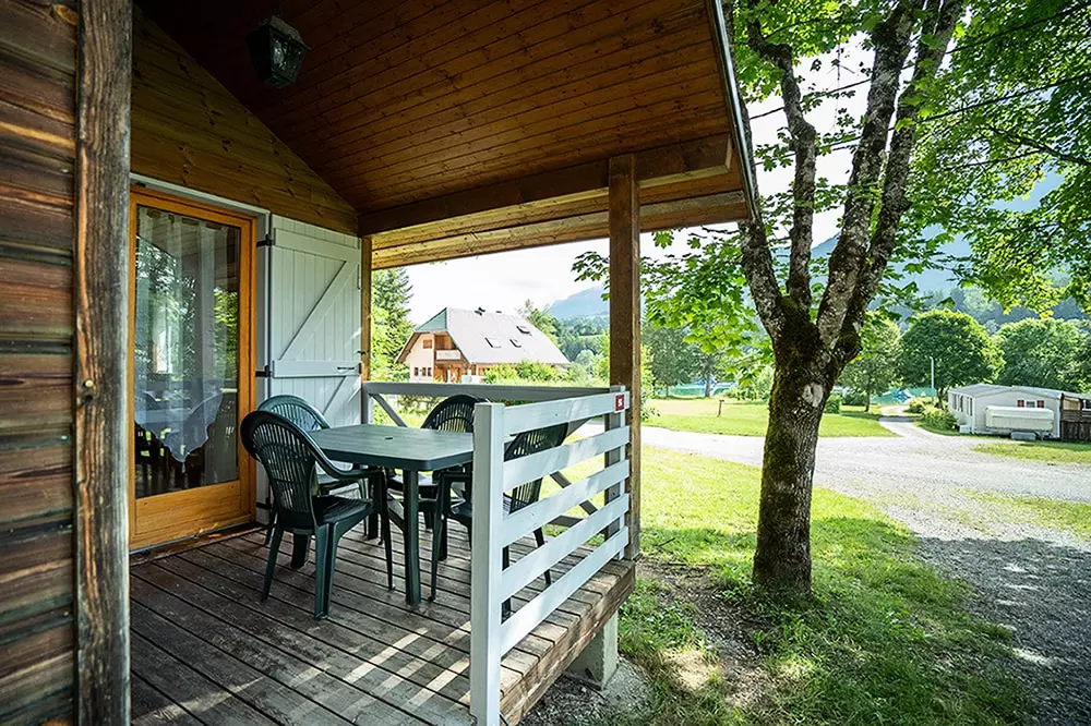 25m², 2 chambres, 1 salle de bain, 1 wc, 1 salle à manger-salon avec kitchenette, 1 terrasse couverte, kit cuisine et couchage pour 5 personnes