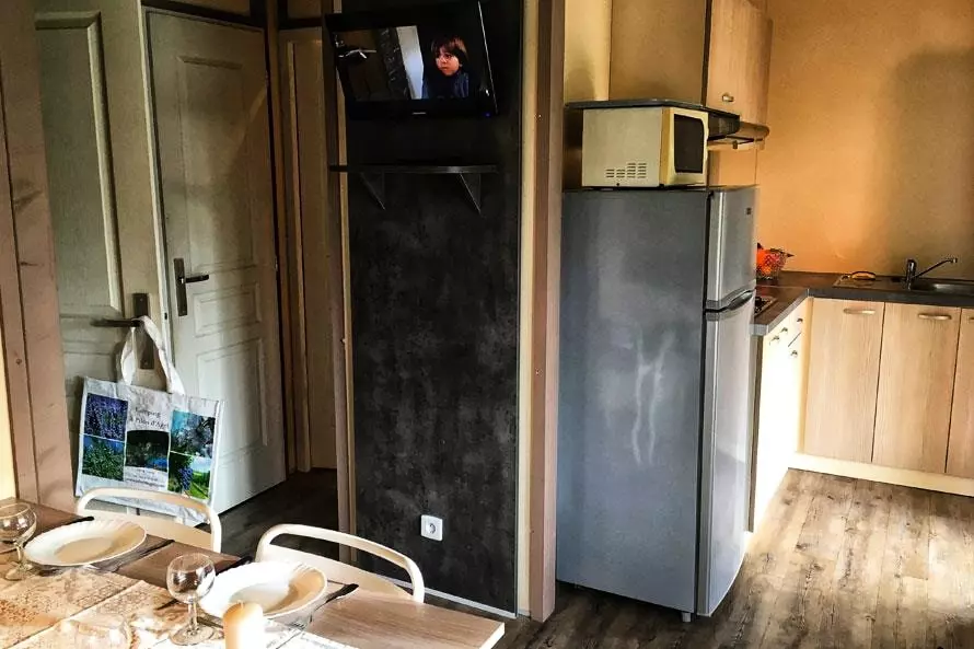 - Réfrigérateur, micro-ondes, cafetière électrique, vaisselle