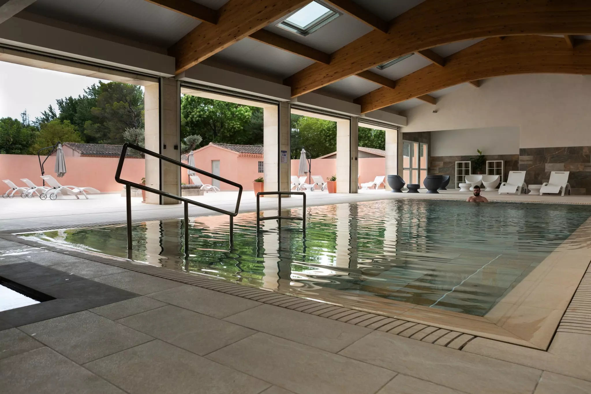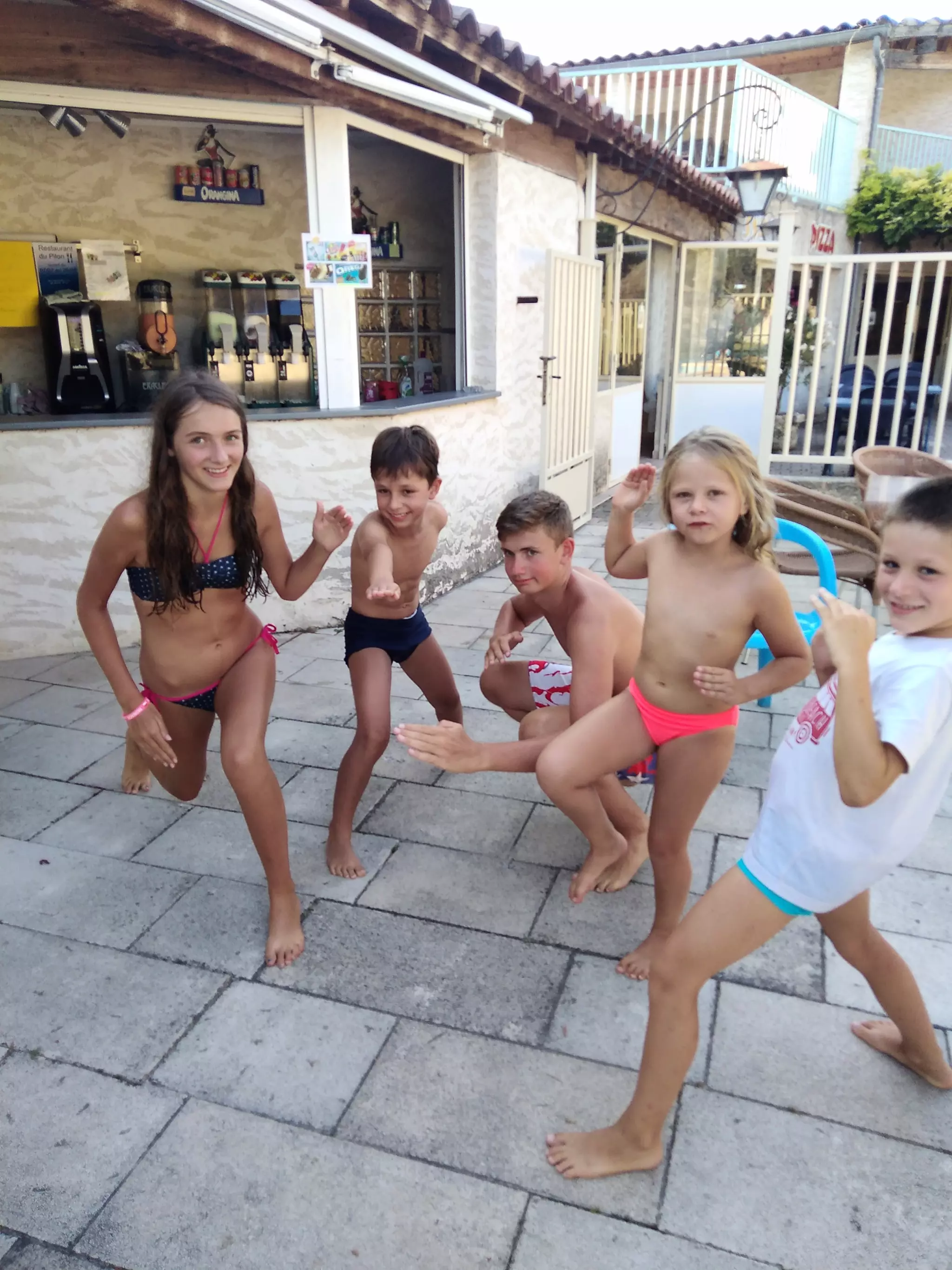 sur place: piscine couverte et chauffee pour le bien etre et une grande piscine exterieure avec solarium jeux enfants et espace exterieur de musculation, table de tennis de table et jeux de boules