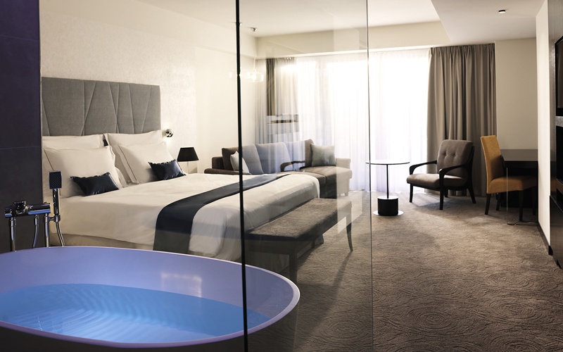 Les chambres, modernes et climatisées, disposent toutes de salle de bains avec douche ou baignoire et sèche-cheveux, télévision LCD, coffre-fort, téléphone, Wifi. Certaines chambres possèdent un balcon, une vue parc ou une vue mer avec supplément.