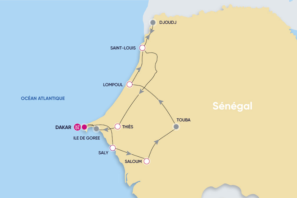Partez à la découverte du Sénégal en passant de Dakar à l'île de Gorée, du Lac Rose à Saint-Louis, du désert de Lompoul à la mangrove dans le Delta du Saloum, un itinéraire classique pour ce circuit qui vous fait découvrir les plus beaux sites du Sénégal. Vous serez séduit par la diversité de paysages et par la richesse culturelle du Sénégal qui offre un univers totalement dépaysant.