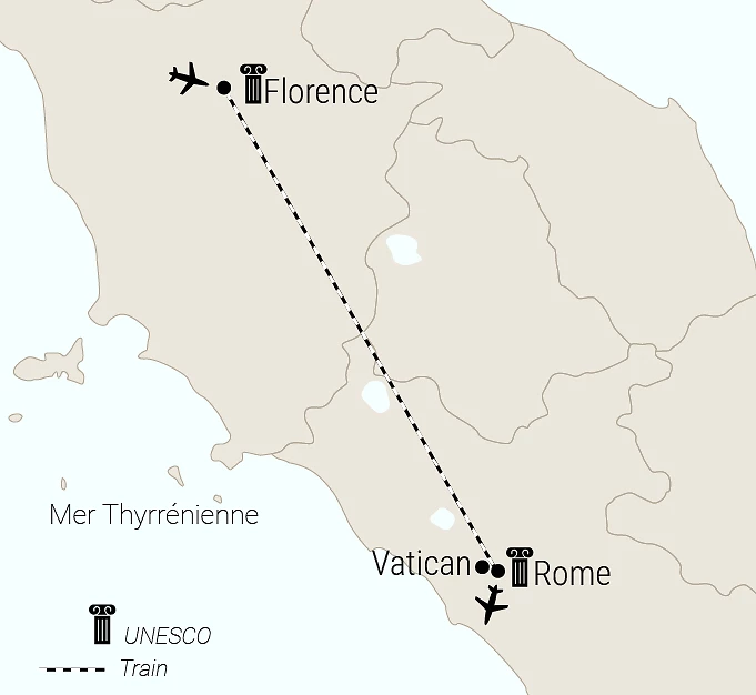 Vol à destination de Florence. Accueil par votre chauffeur et transfert à l’hôtel situé en plein cœur du centre-ville historique. Épicentre des arts à la Renaissance, Florence inspira tous les corps de métiers artistiques. Sculpteurs, peintres, architectes rivalisèrent de talent et dotèrent la ville de multiples trésors à découvrir tantôt lovés dans de somptueux musées tantôt au détour d’une ruelle. Déjeuner, après-midi et dîner libres. Nuit à l’hôtel.