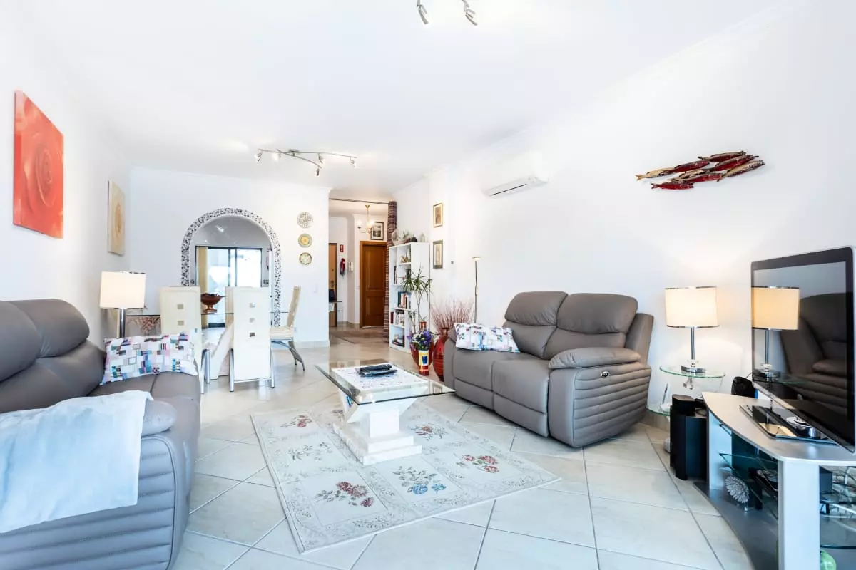 Cet appartement de 2 chambres est situé dans une copropriété privée, moderne et confortable, avec un jardin et une vue magnifique sur la mer, avec une grande terrasse orientée au sud offrant un accès direct aux deux piscines communes, permettant une utilisation par les adultes et les enfants dans un cadre privé. Il se trouve à seulement 5 minutes en voiture de Meia Praia et du port de plaisance de Lagos.