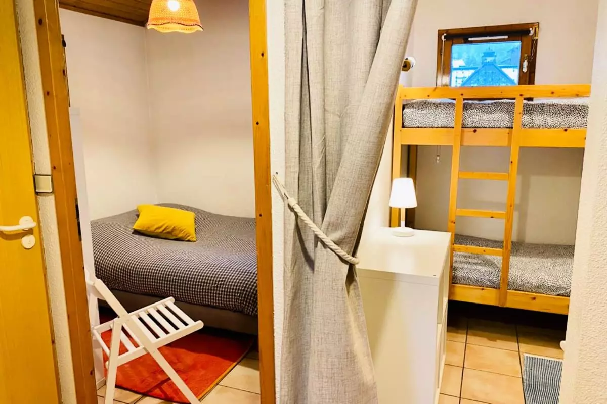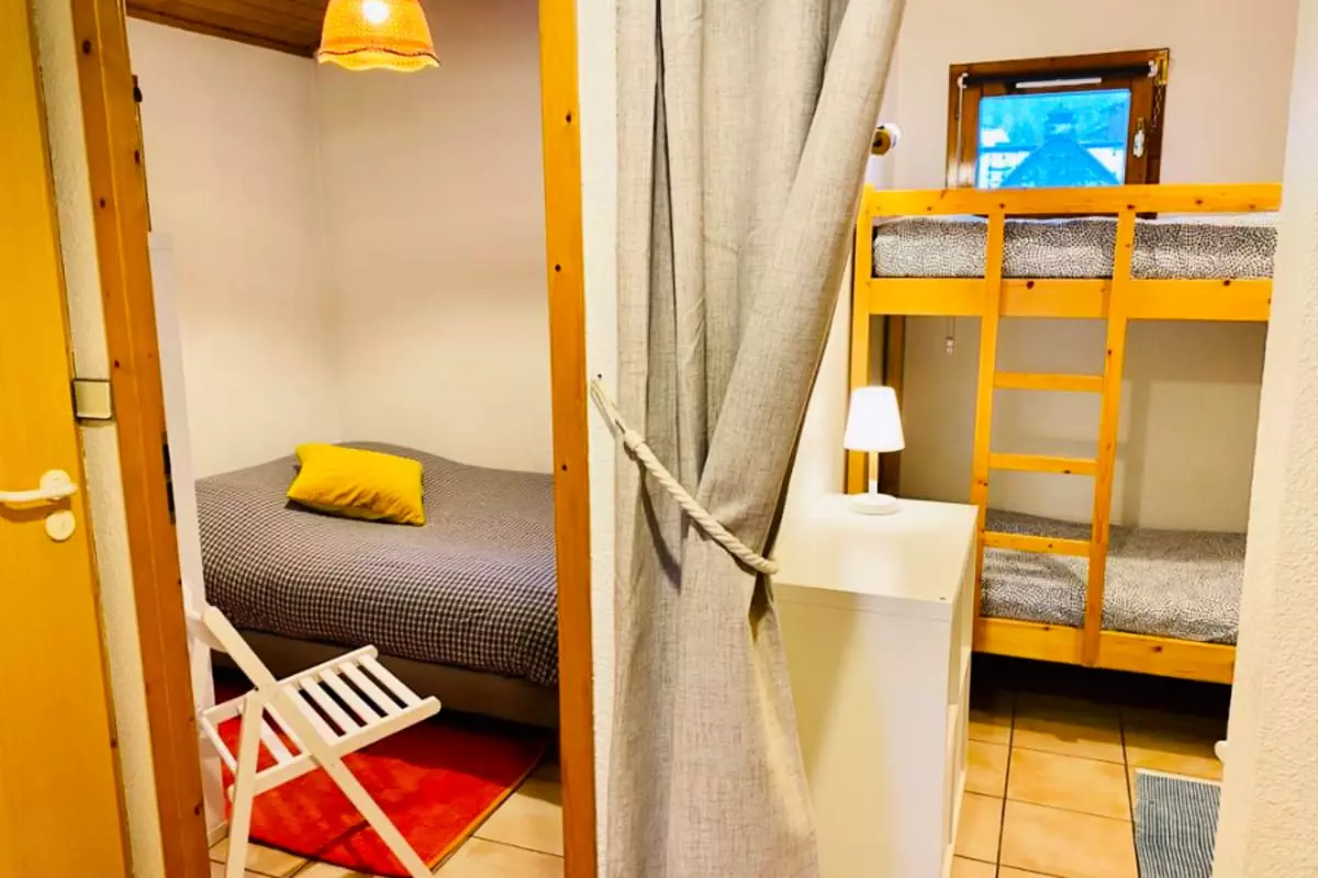 Le logement se compose de 2 chambres dont un type cabine fermé juste avec un rideau, 1 salle de bain et peut accueillir jusqu'à 4 personnes. Il est idéalement situé à 5mn du téléski du Savoy et à 15 min à pied des télécabines du Brevent.