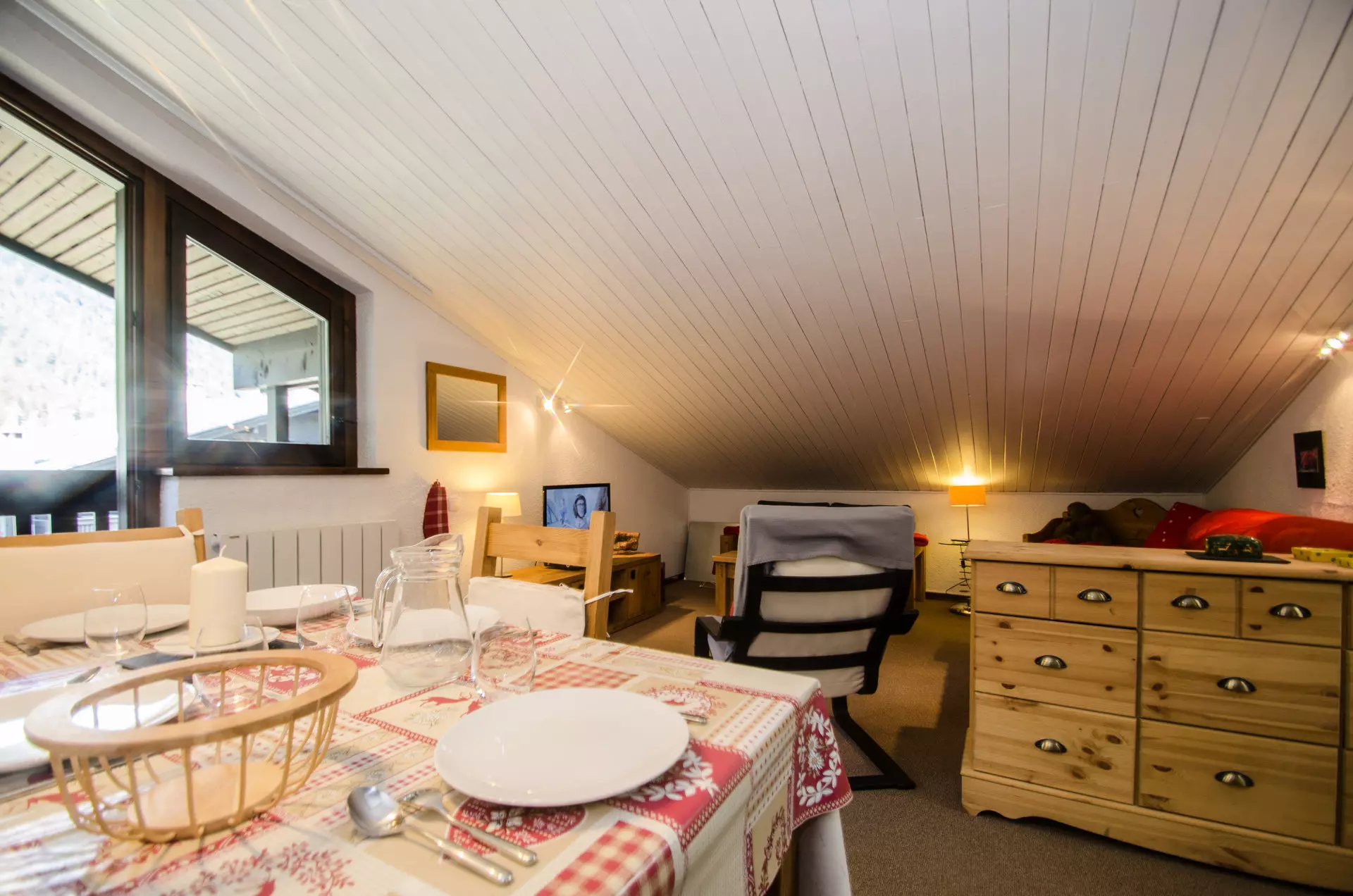 Bel appartement sous pente de 41m² (dont 33m² en Loi Carrez), pour 4 personnes, au 4ème étage avec ascenseur de la résidence "Champraz" située au Praz de Chamonix.
