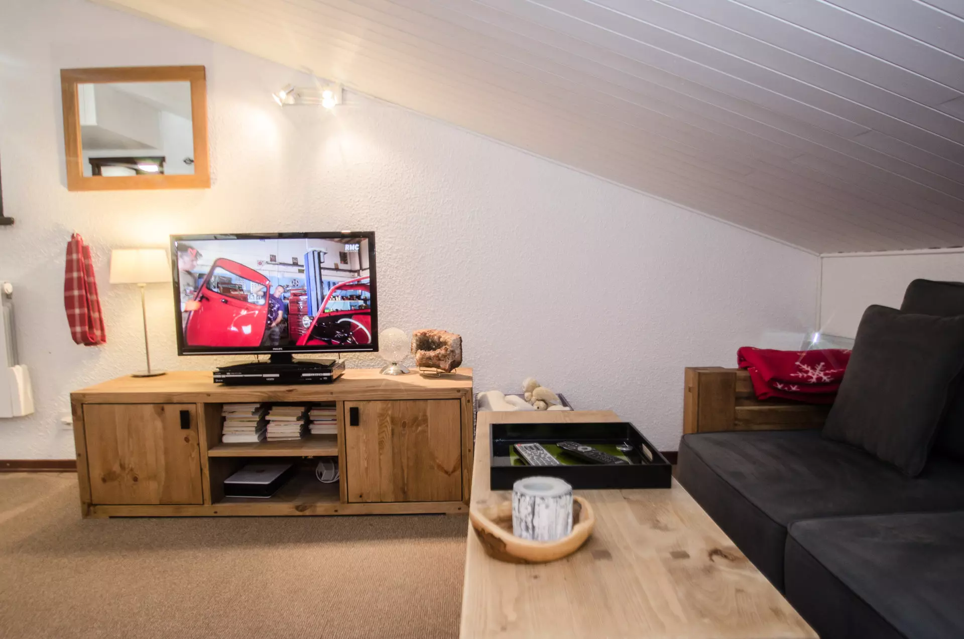- Salon avec TV, lecteur DVD et un canapé lit BZ pour deux personnes