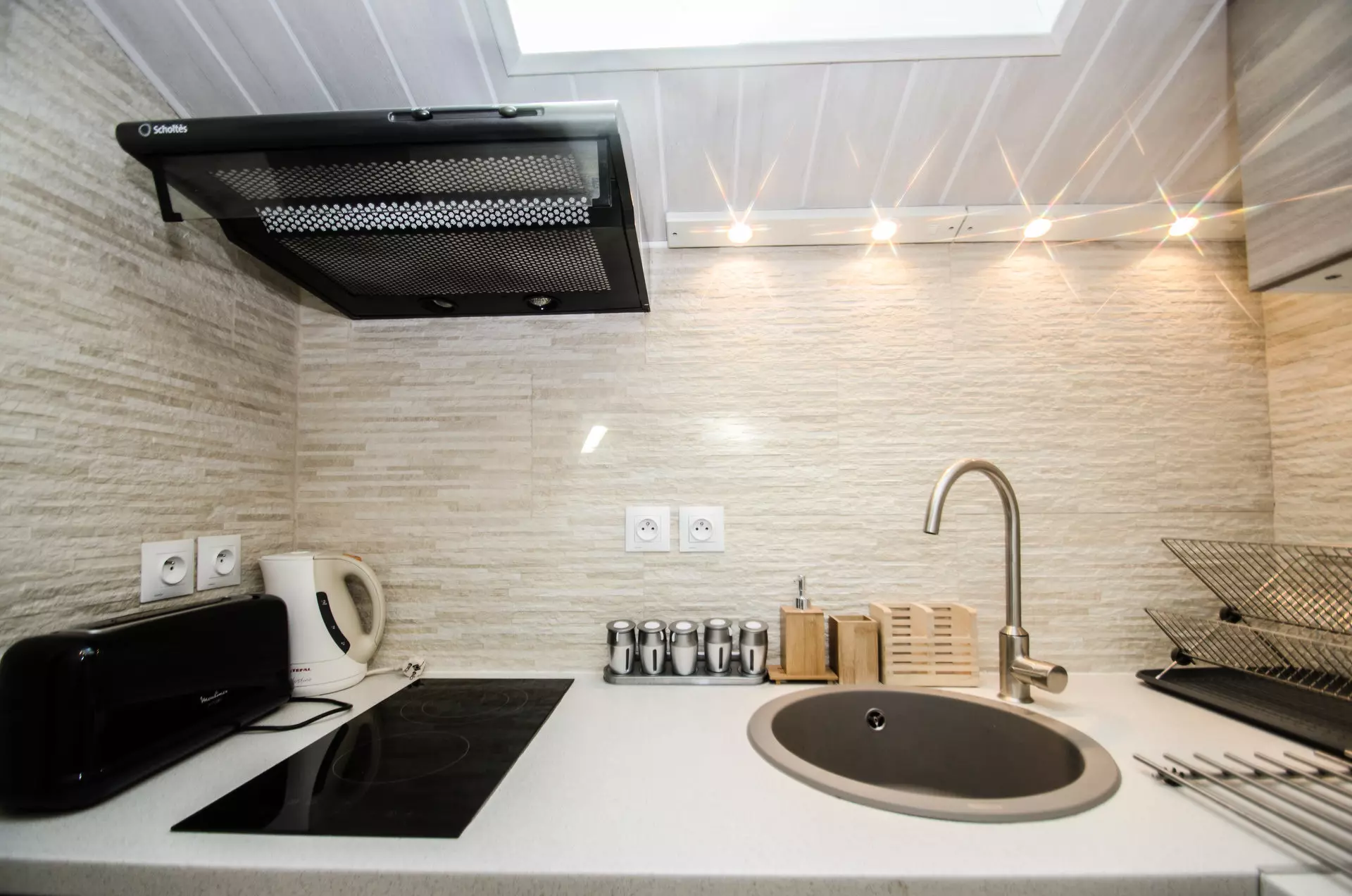 - Cuisine séparée équipée (lave-vaisselle, réfrigérateur, congélateur, plaques vitrocéramiques et micro-ondes. cafetière filtre, bouilloire, grille-pain)