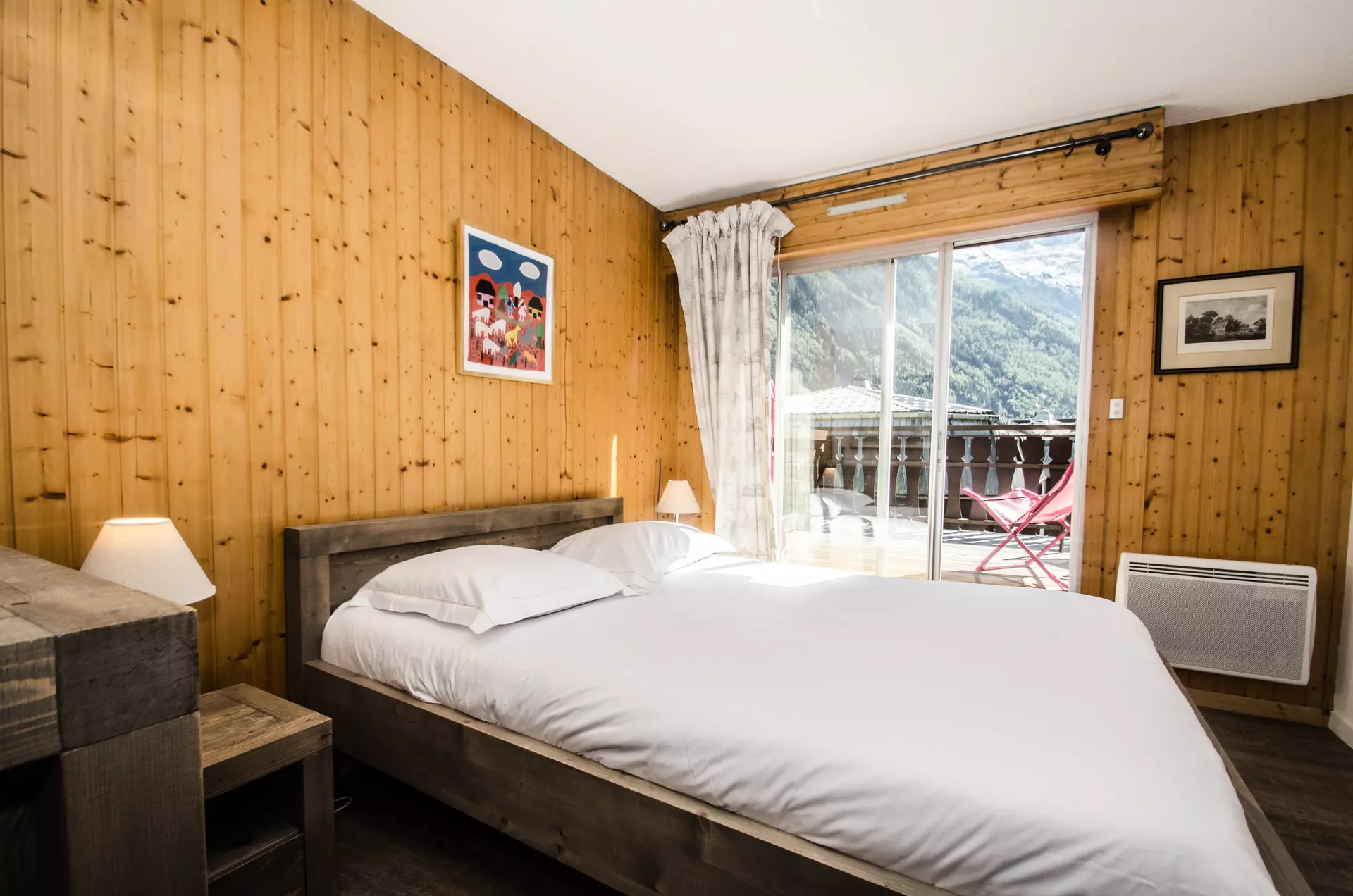 - Accès à la grande terrasse face au Mont-Blanc équipée d'un salon de jardin