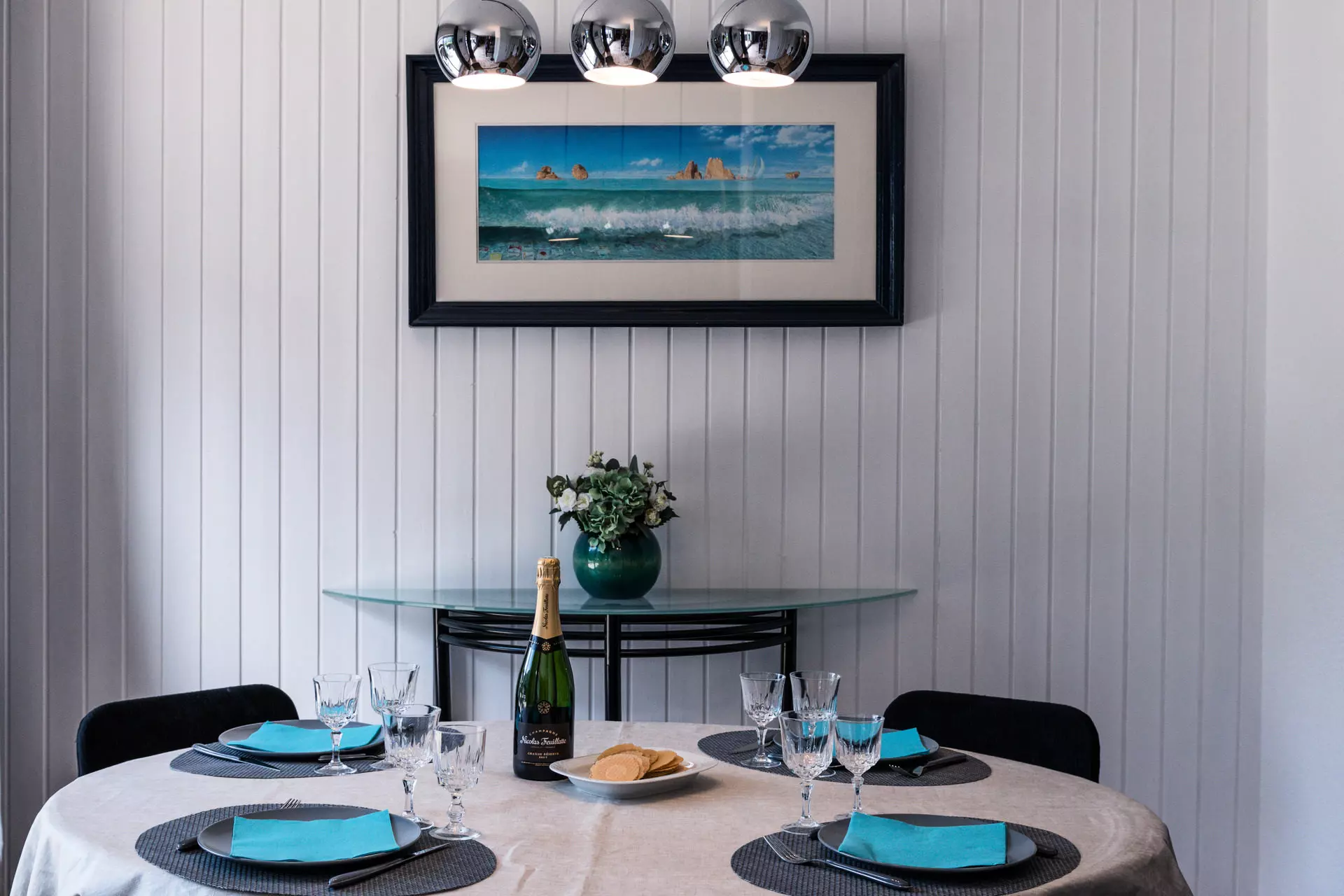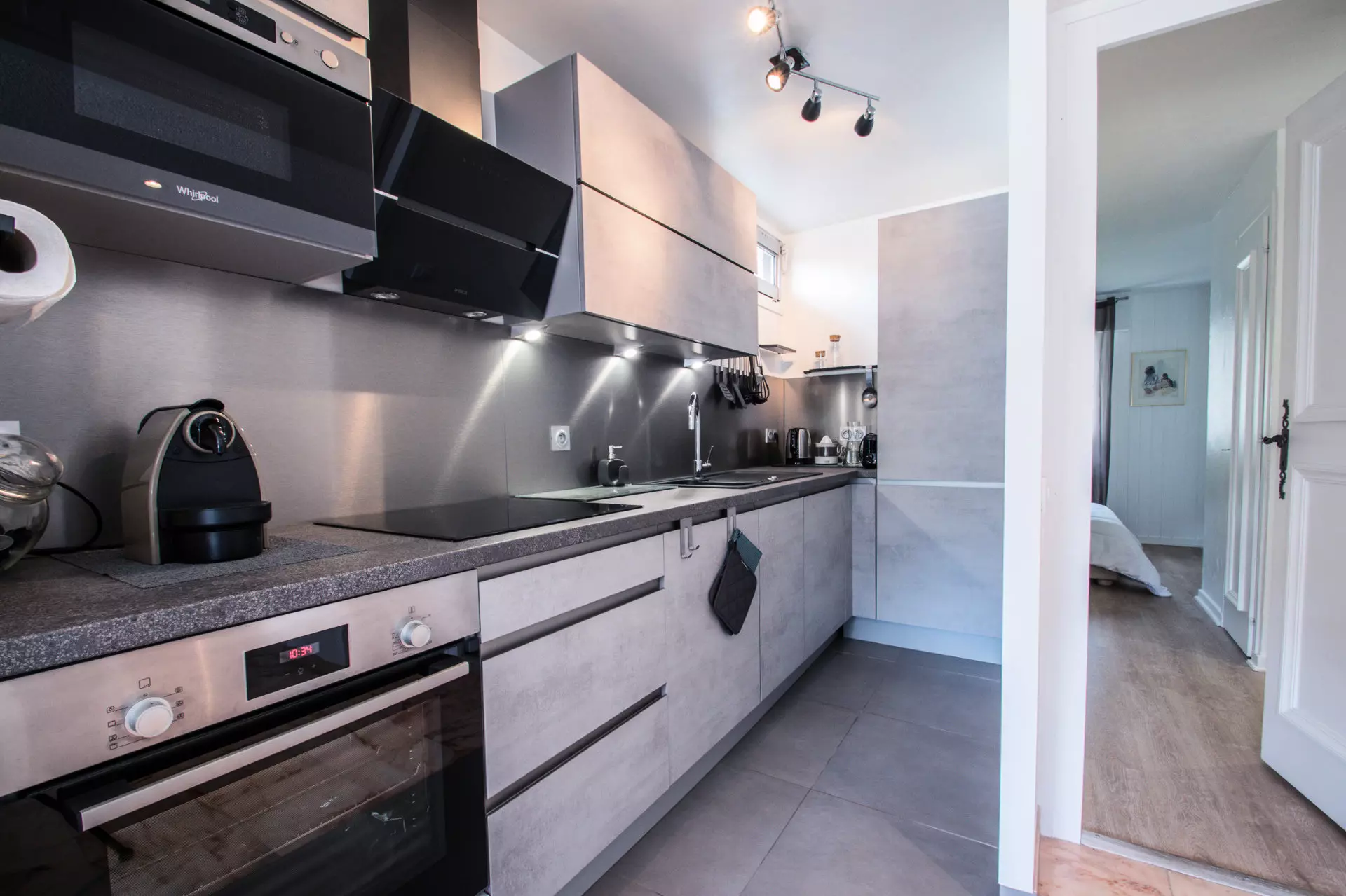 - Cuisine séparée (four, plaques vitrocéramiques, micro-ondes, lave-vaisselle et réfrigérateur, cafetière filtre, Nespresso, bouilloire, grille-pain, crépière, 2 appareils à raclette)