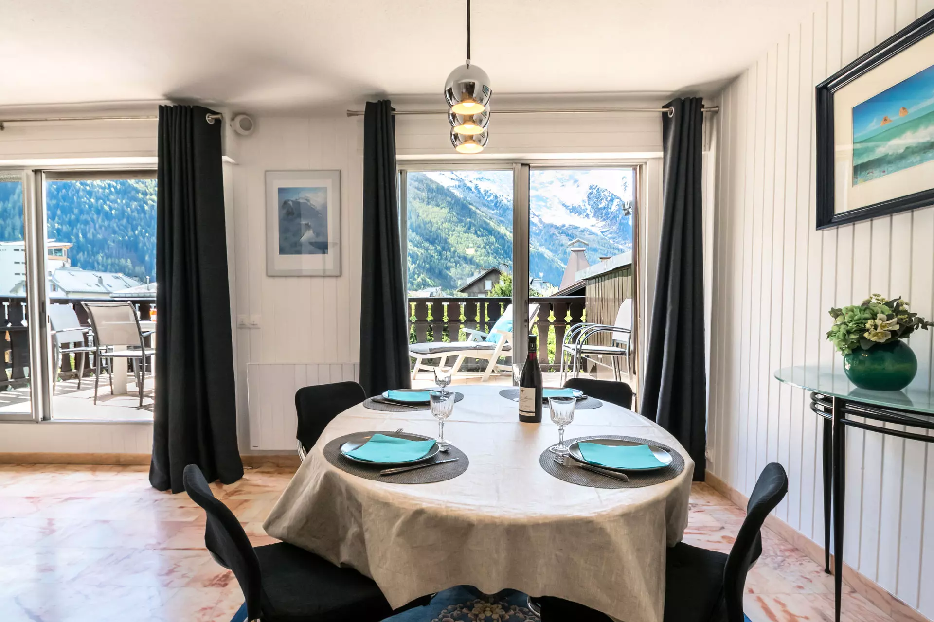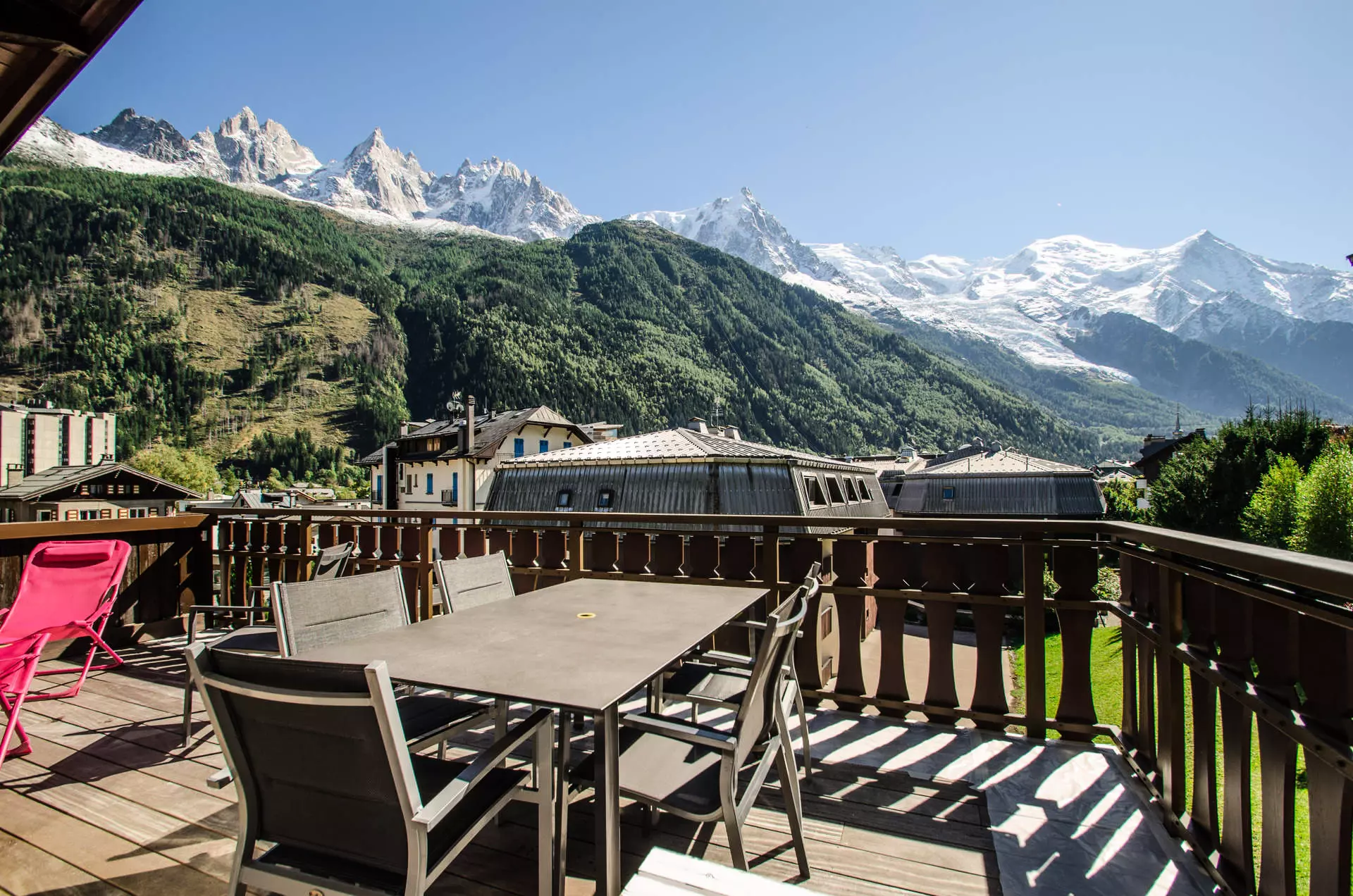 - Balcon équipé de mobilier de jardin. Superbe vue sur le Mont-Blanc