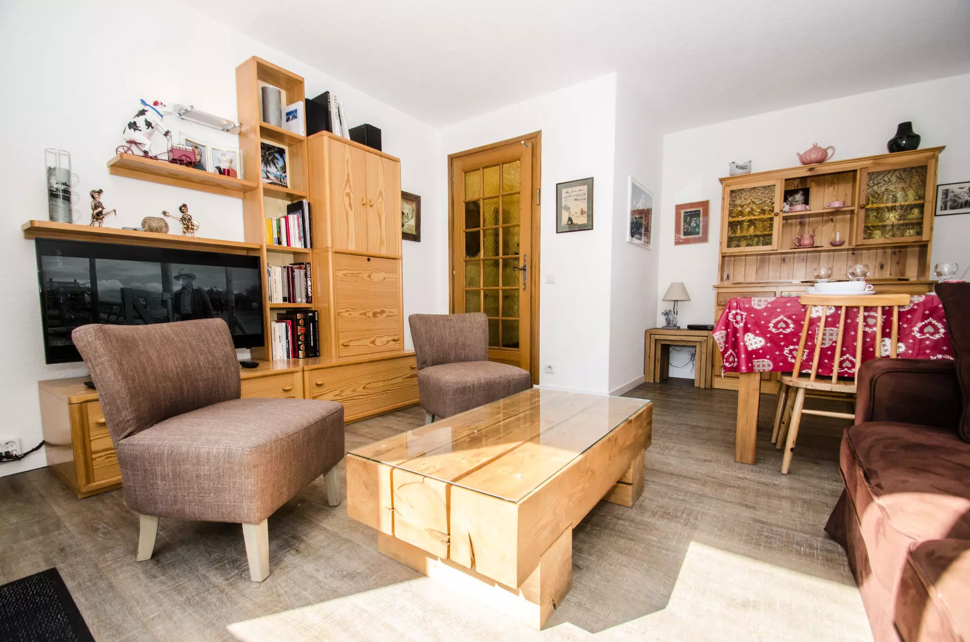 - Coin repas / coin salon équipé d'une TV, et d'une cheminée décorative (non-utilisable)