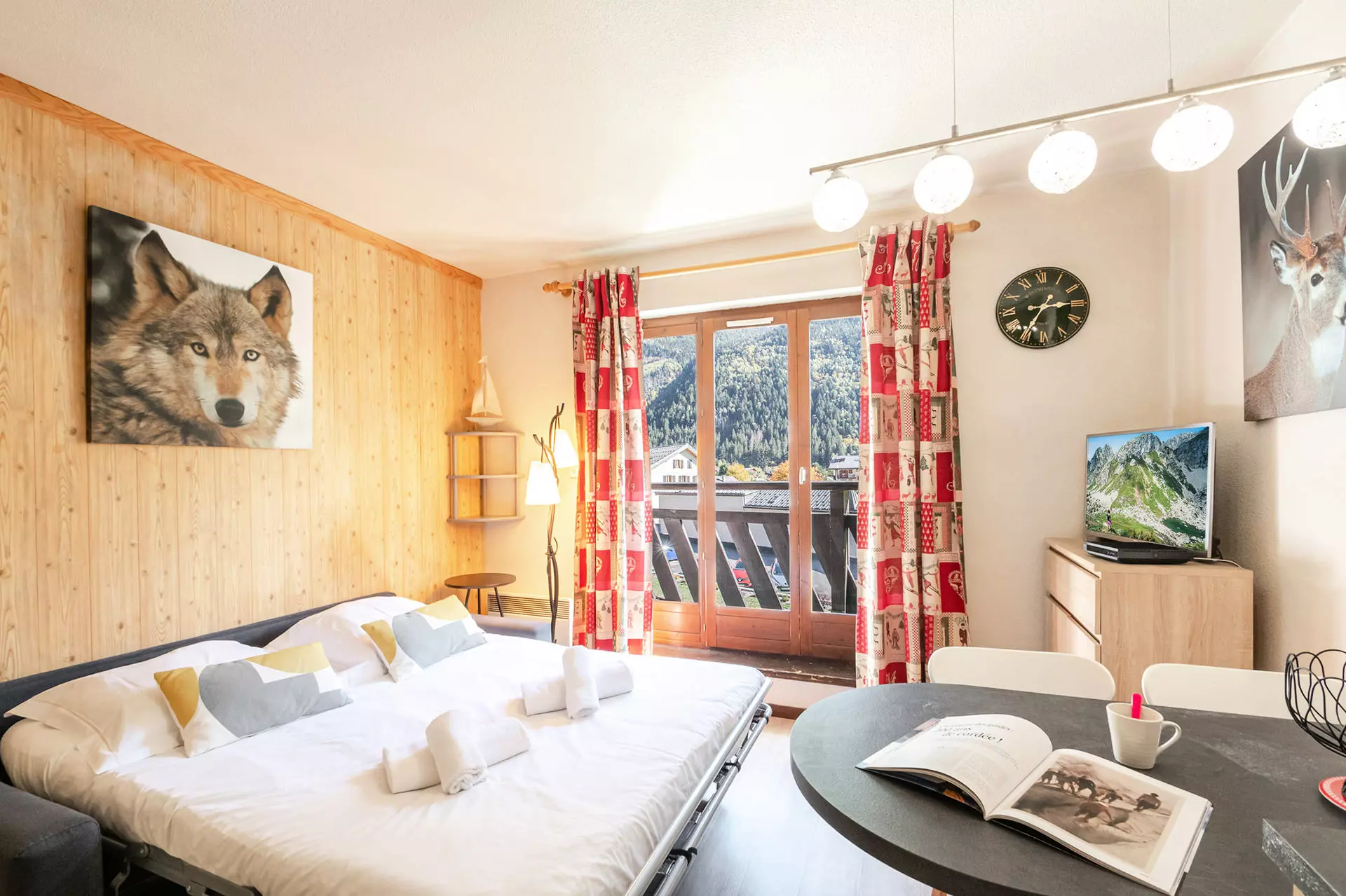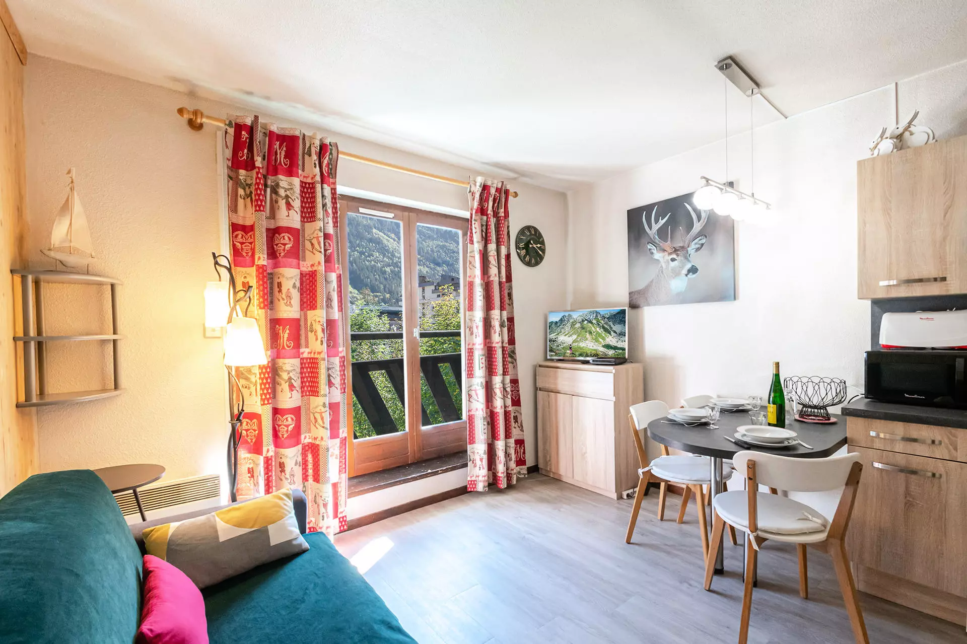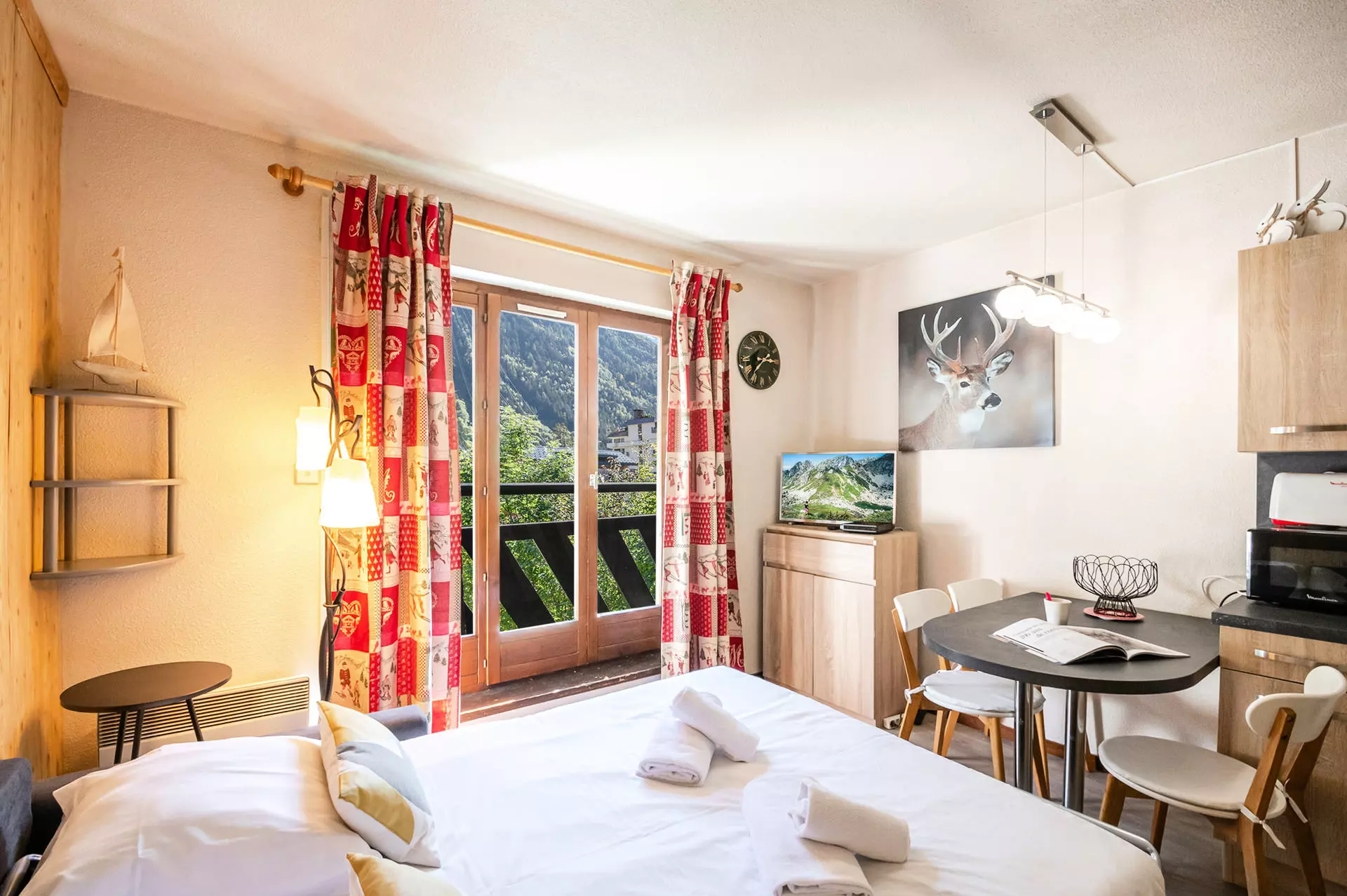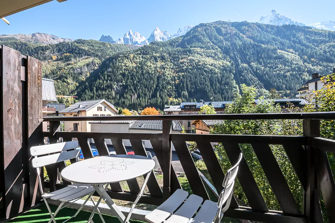 - Balcon équipé d'une petite table et 2 chaises. Exposition sud et vue Mont-Blanc
