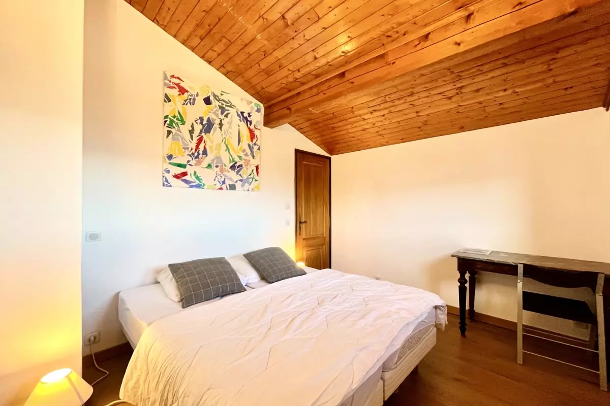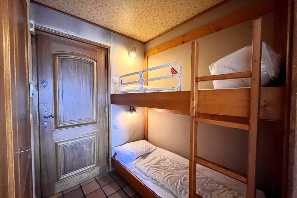 Tout confort, il comprend des coins montagnes avec deux lits superposés, une chambre avec un lit double, et une autre chambre avec deux lits simples collés ensemble.