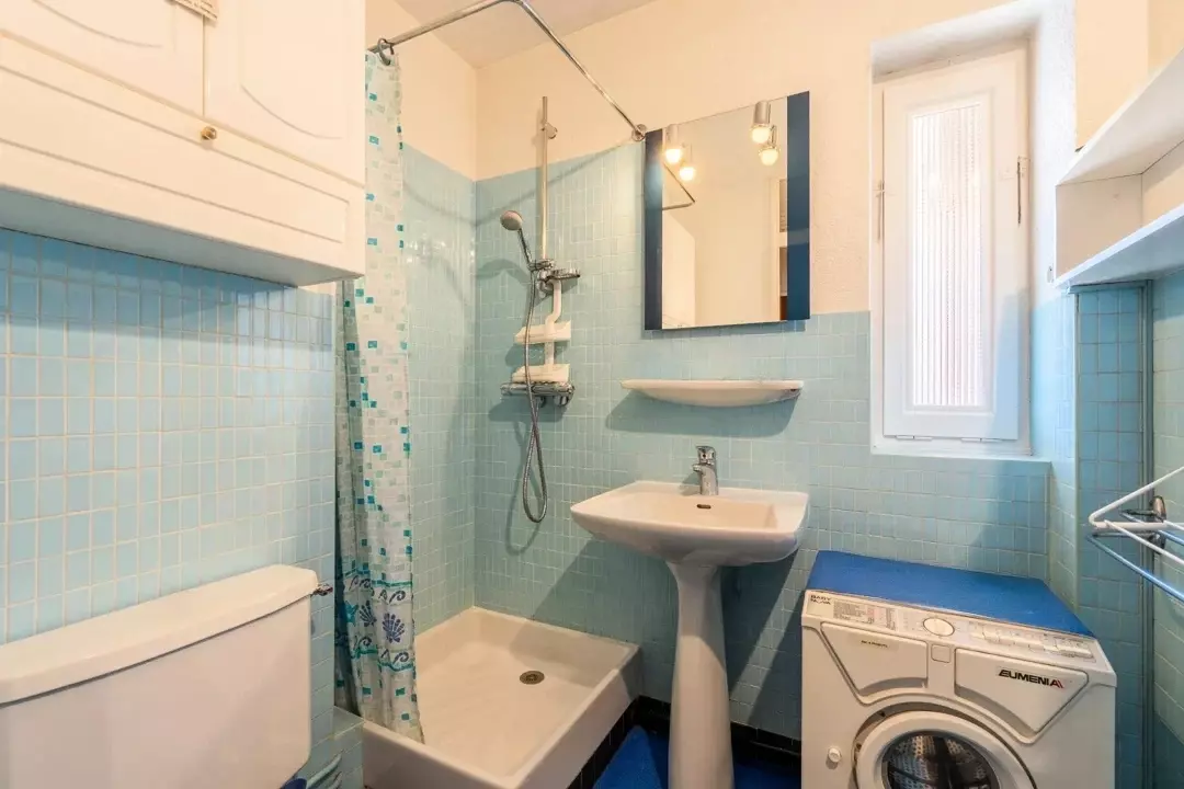 - SALLE D'EAU (3 m²) : lavabo, douche, WC, LAVE-LINGE (3 KG), petite fenêtre ouest