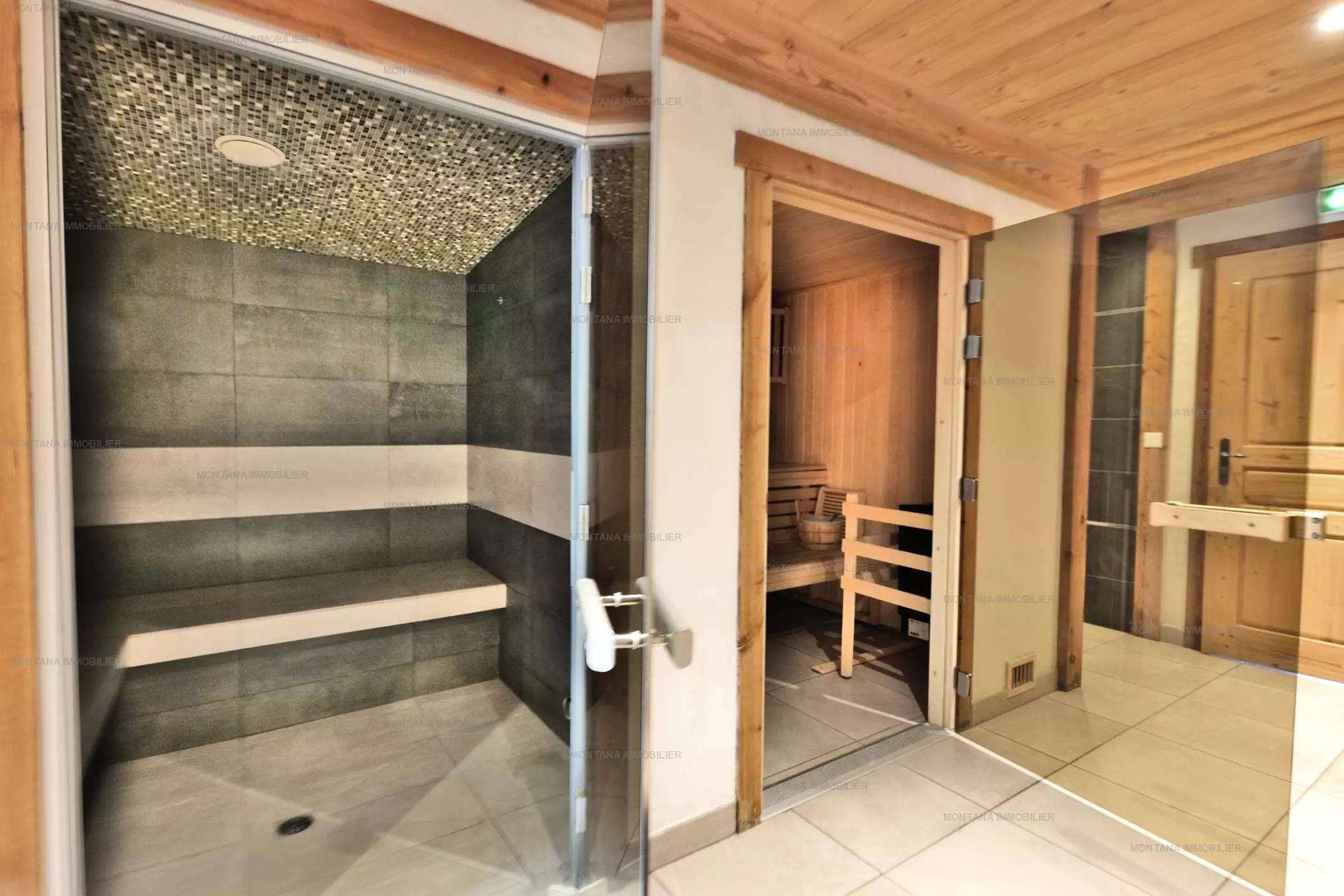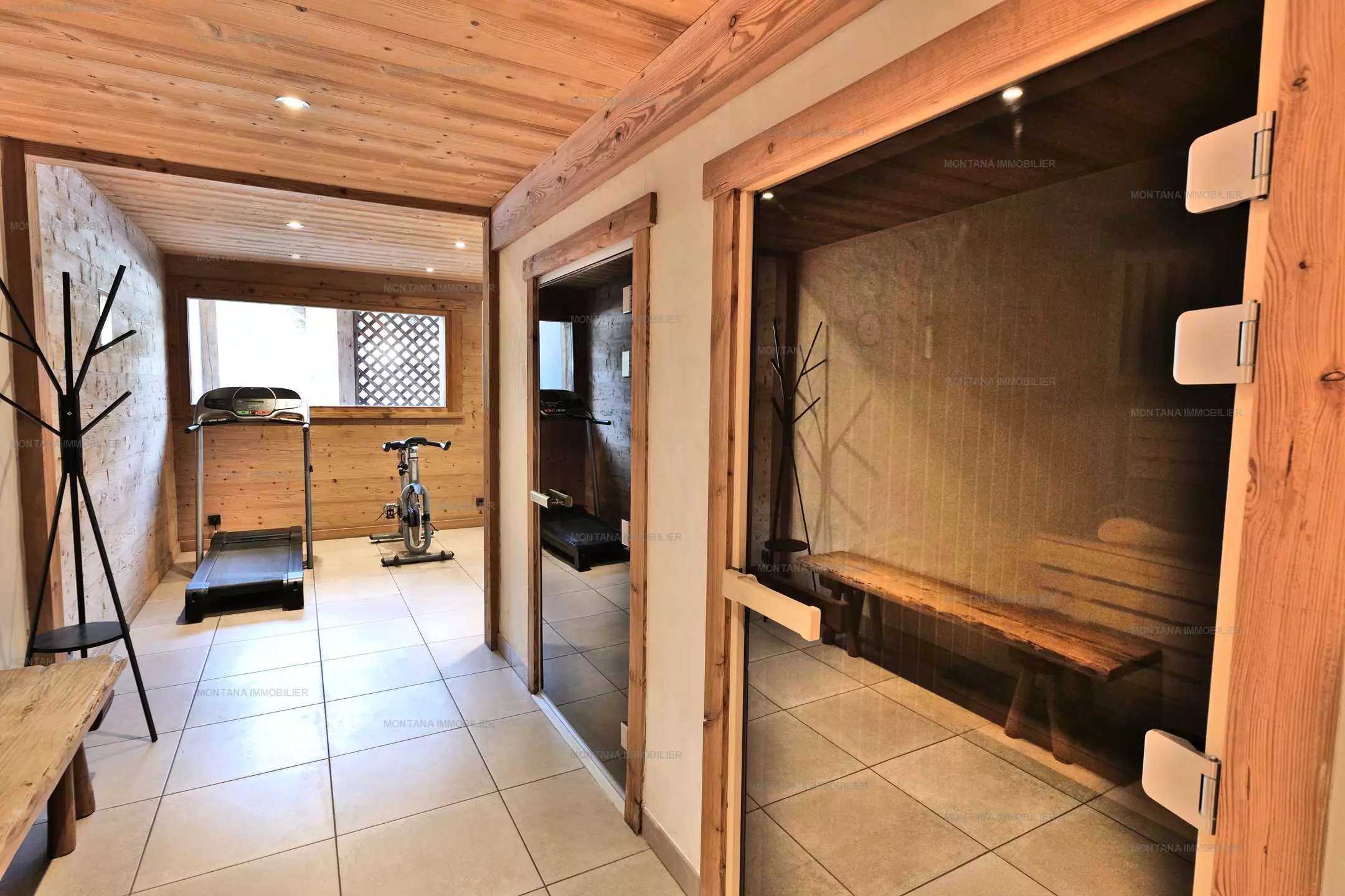 Profitez du confort de ce logement en bénéficiant d'un accès au sauna, hammam, bains à remous et à la salle de fitness avec banc de musculation, commun aux 3 appartements de la maison.