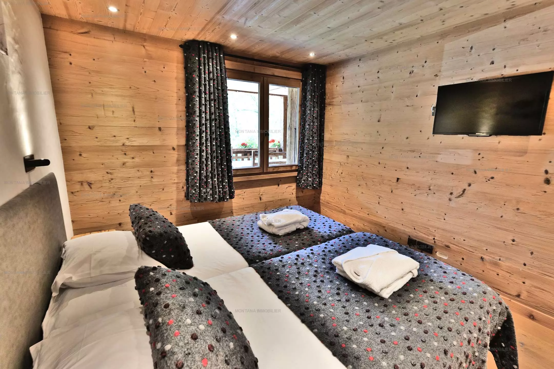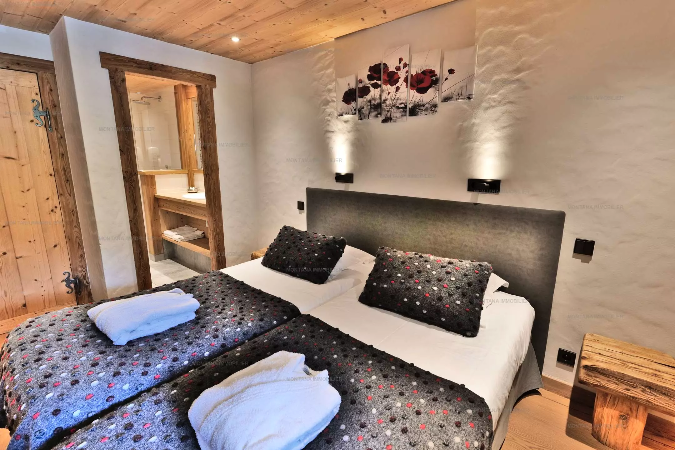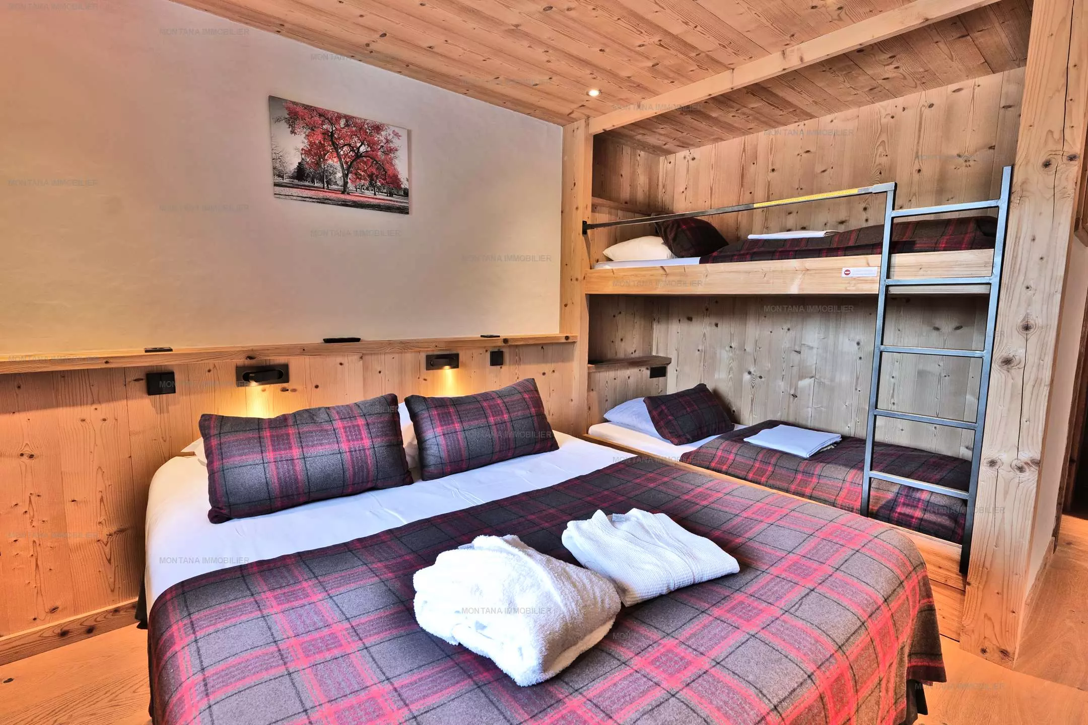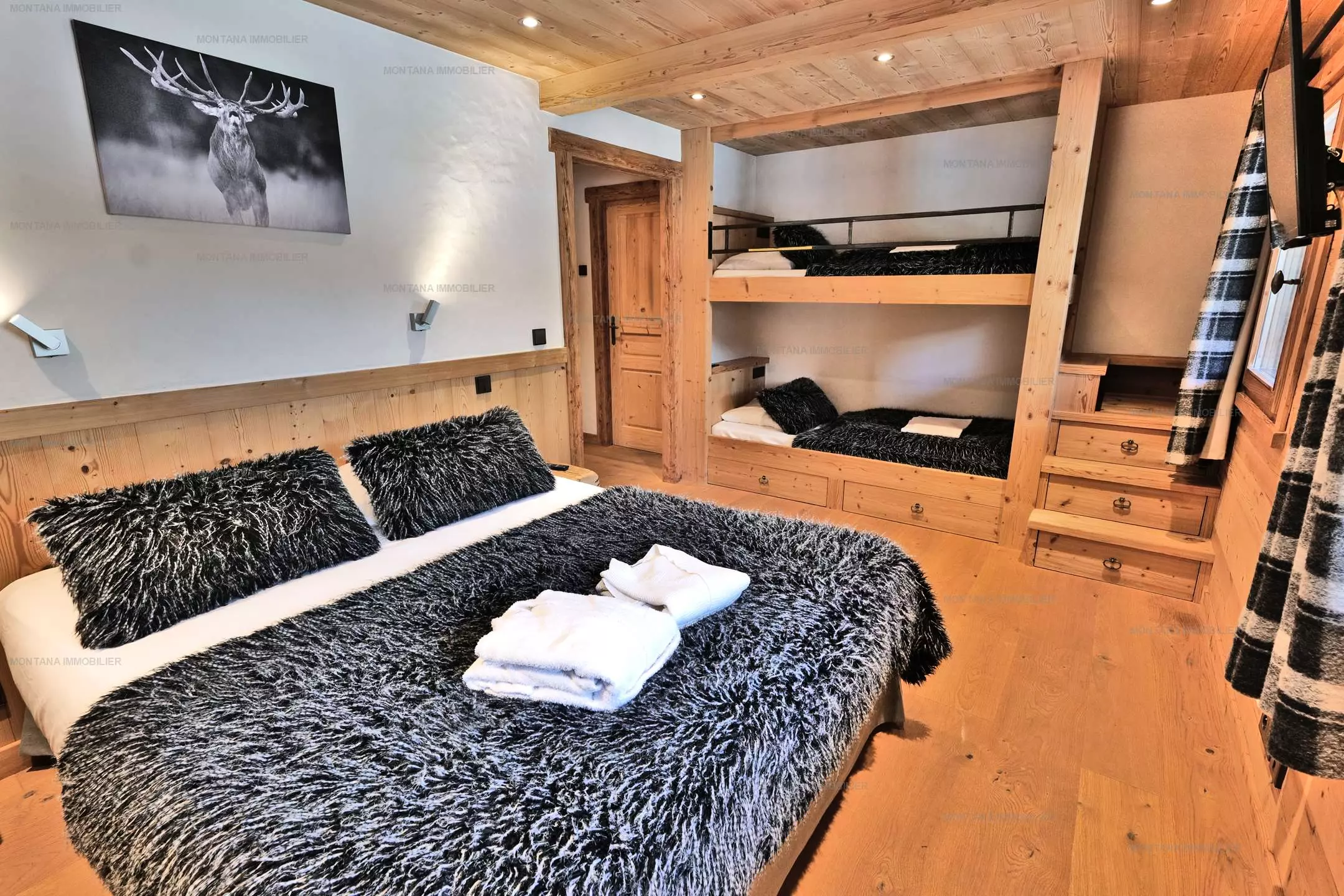 Suite 4: 1 lit double x160 + 2 lits superposés x90 + salle d'eau et TV