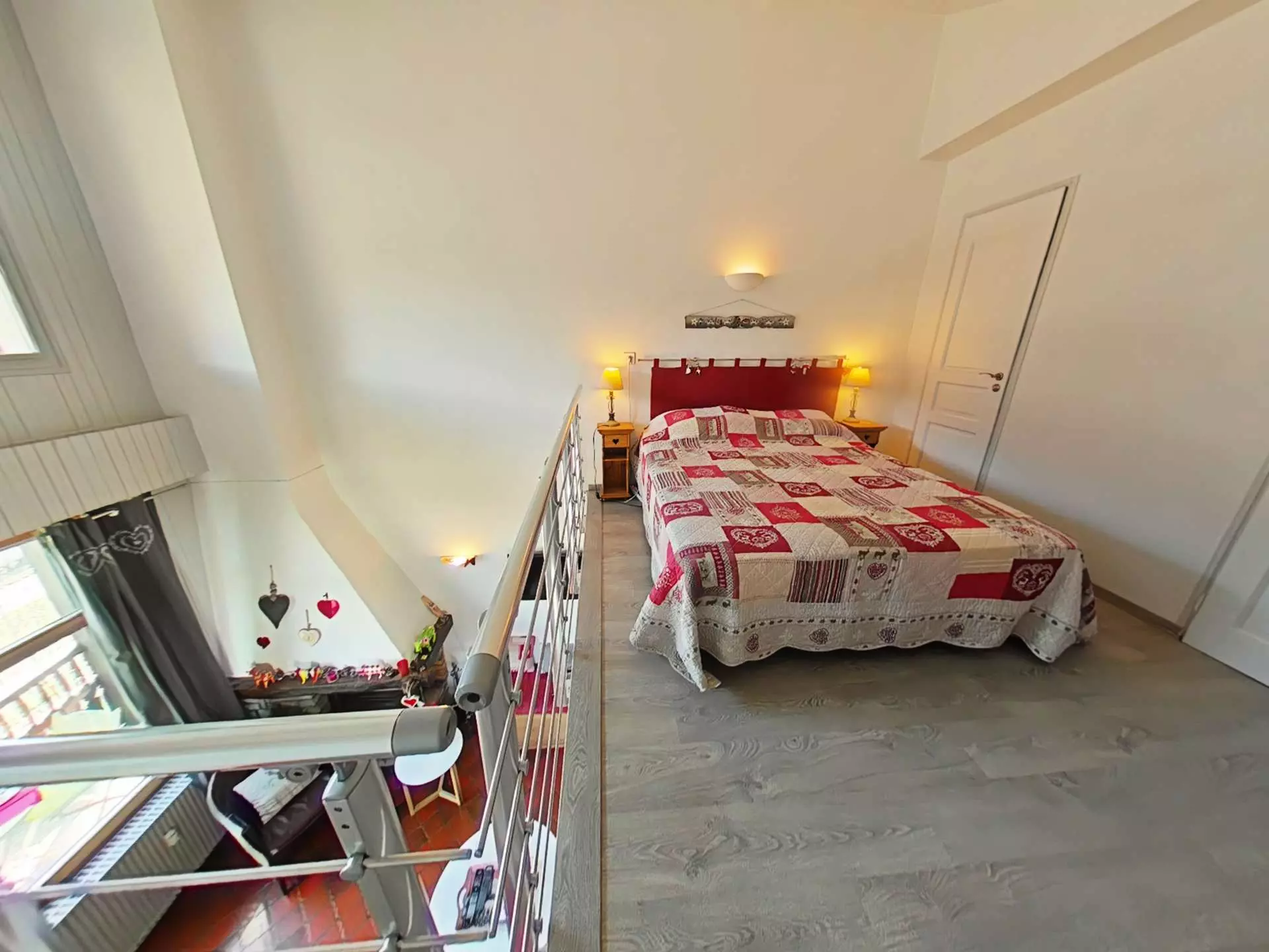 Cet appartement de vacances, situé au 2ème étage, se compose d'un beau séjour avec télévision et cheminée décorative donnant sur un grand balcon sud, une cuisine ouverte équipée d'un lave-vaisselle, une chambre avec un lit double, une cabine avec 2 lits superposés, une salle de bain avec WC intégré. A l'étage, une mezzanine avec un lit double, une salle d'eau et un WC séparé. Résidence sécurisée d'un digicode.