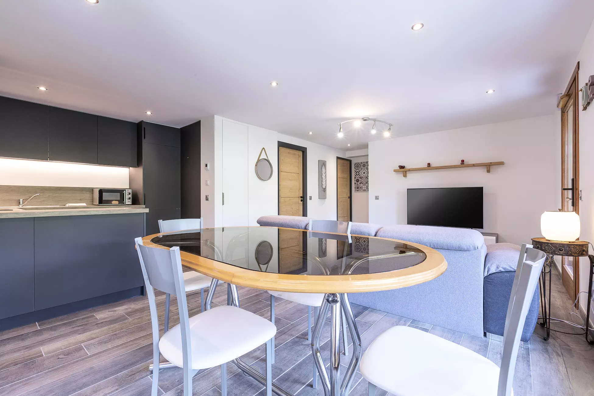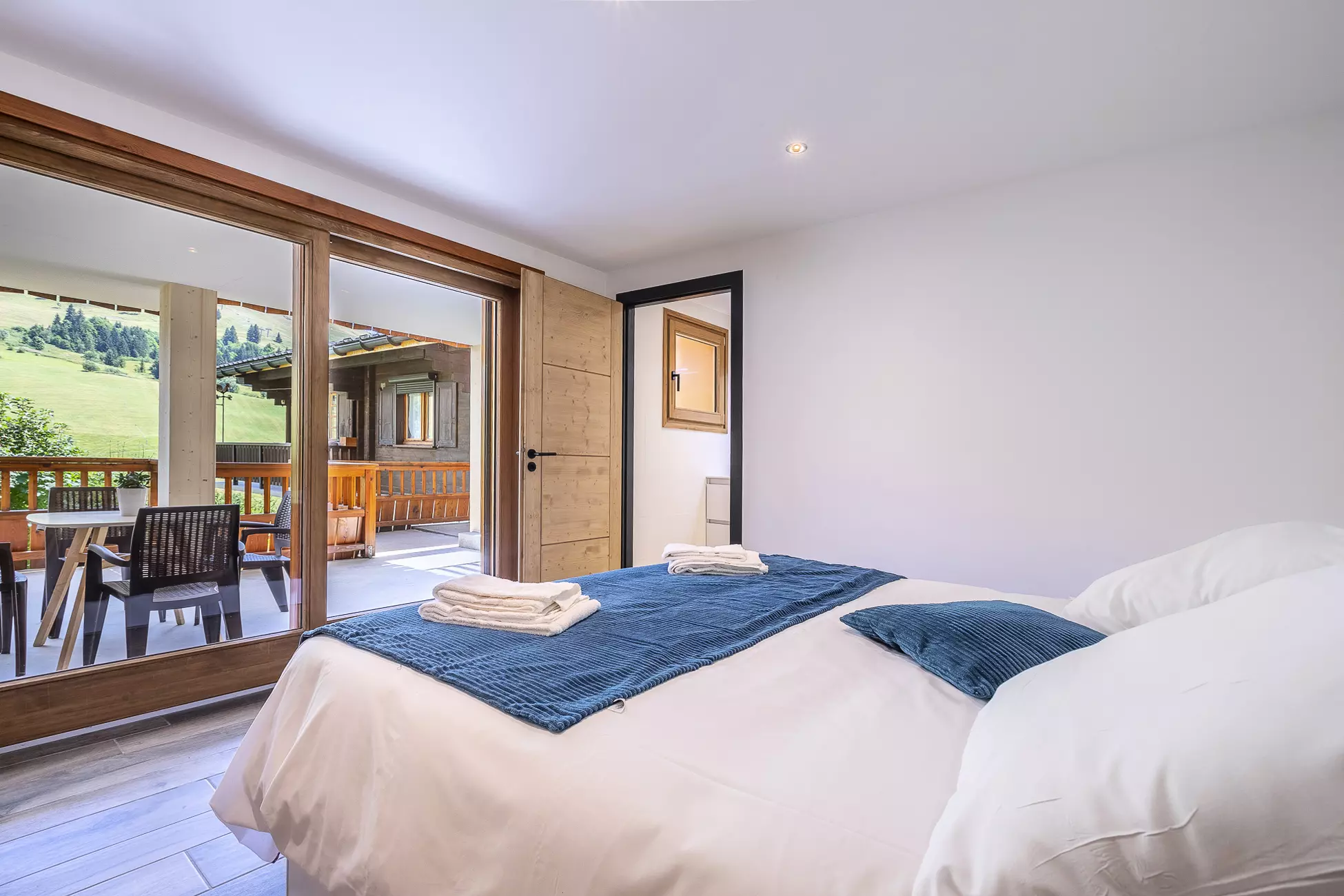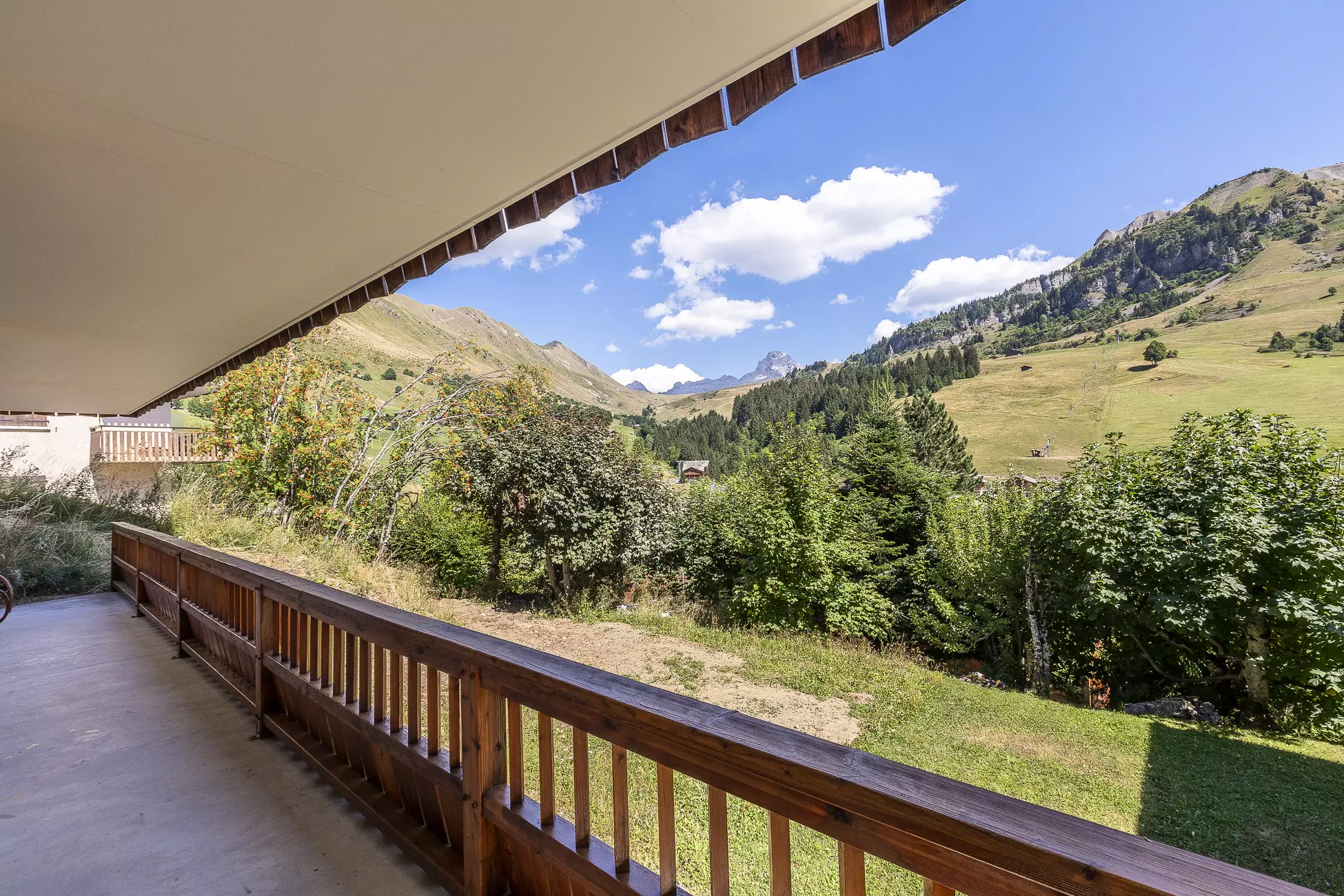 Vous profiterez du balcon et de la terrasse exposés Sud avec une belle vue sur les montagnes.