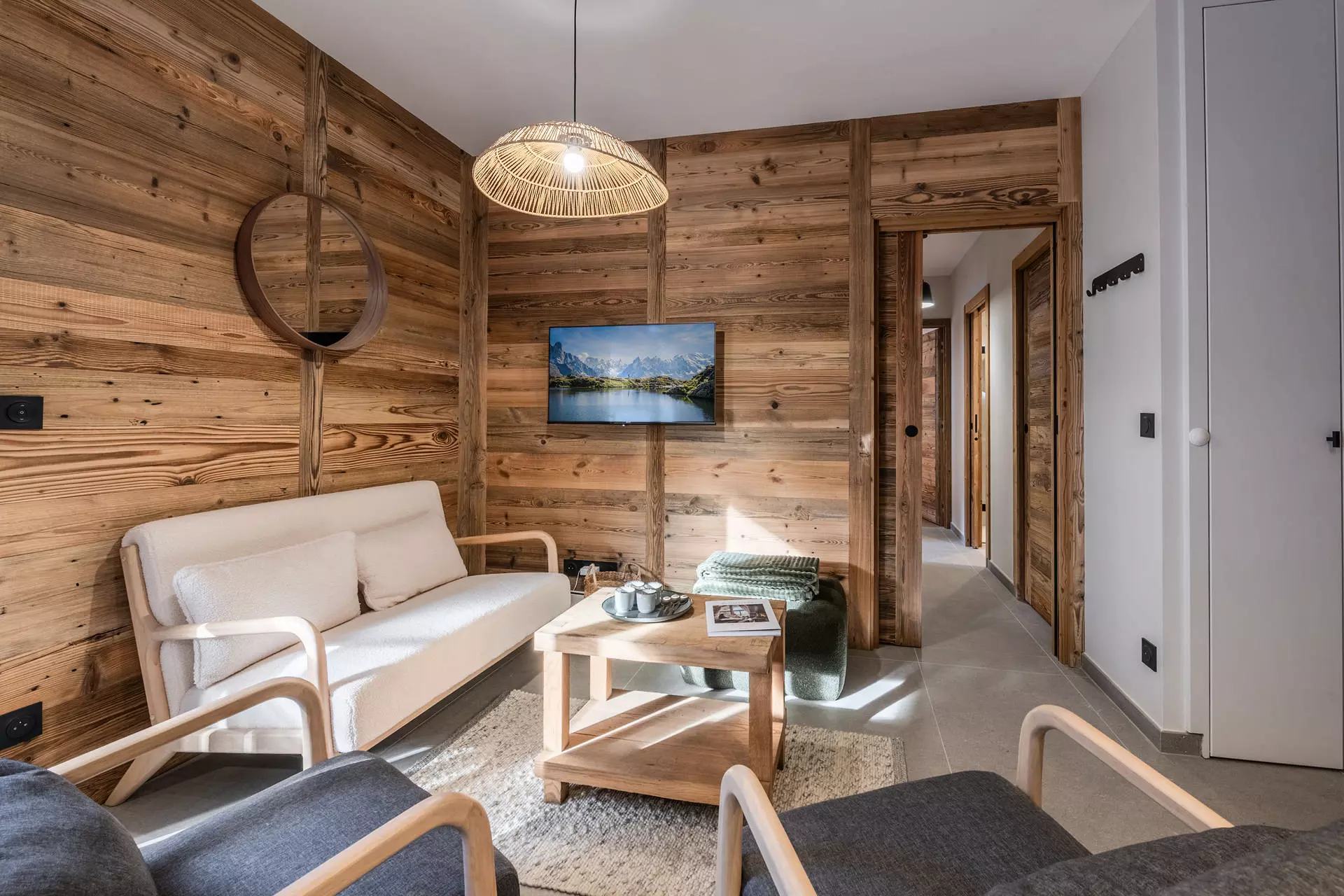 - Séjour comprenant un ensemble de fauteuils modernes et une TV