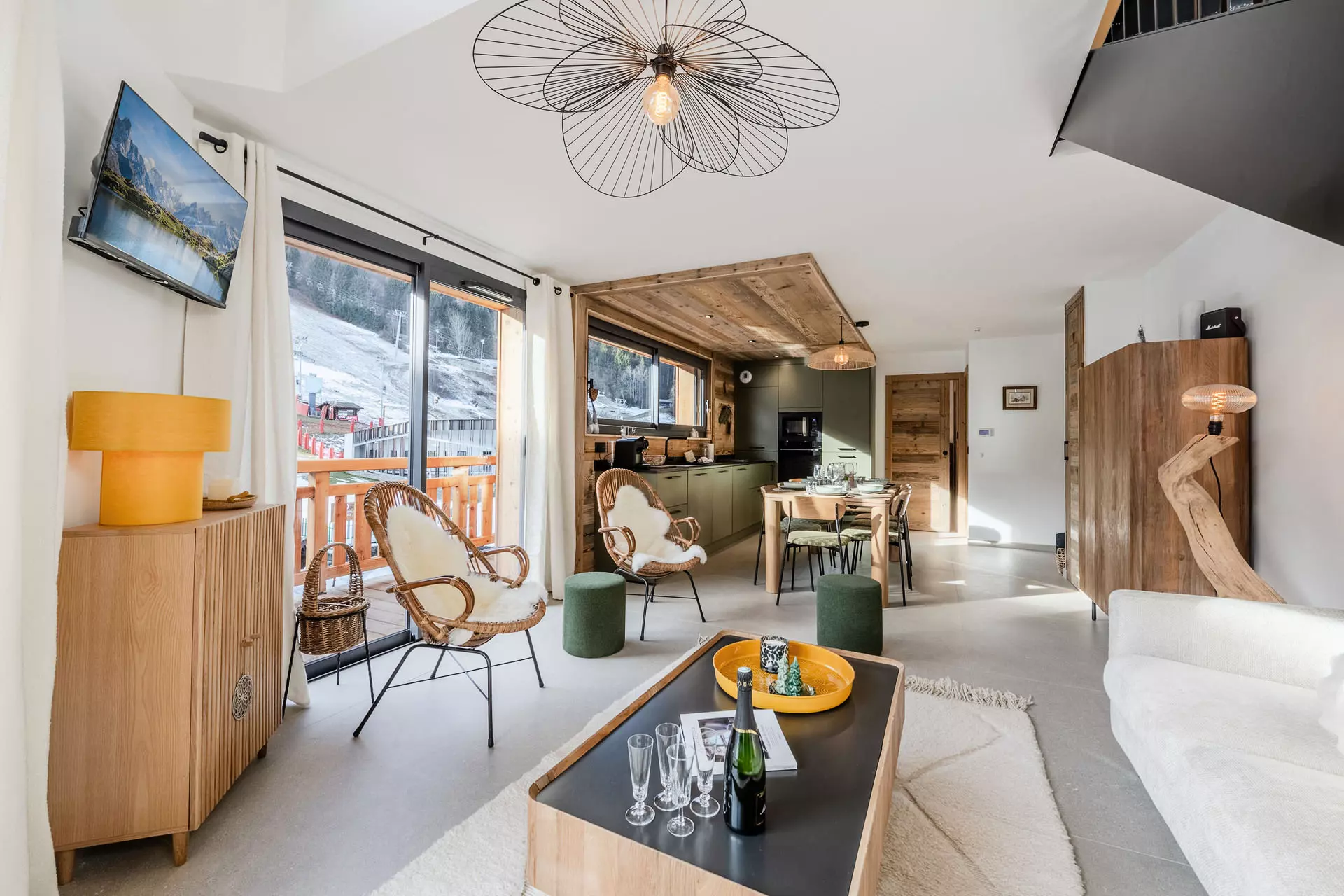 Appartement neuf de 3 pièces, situé au 1er étage avec ascenseur dans la résidence récente LE PRAZ, idéalement placée au pied des pistes du Pleney. Avec une surface habitable de 52 m², il offre une ambiance chaleureuse mêlant montagne et contemporain, et peut accueillir 6 personnes.