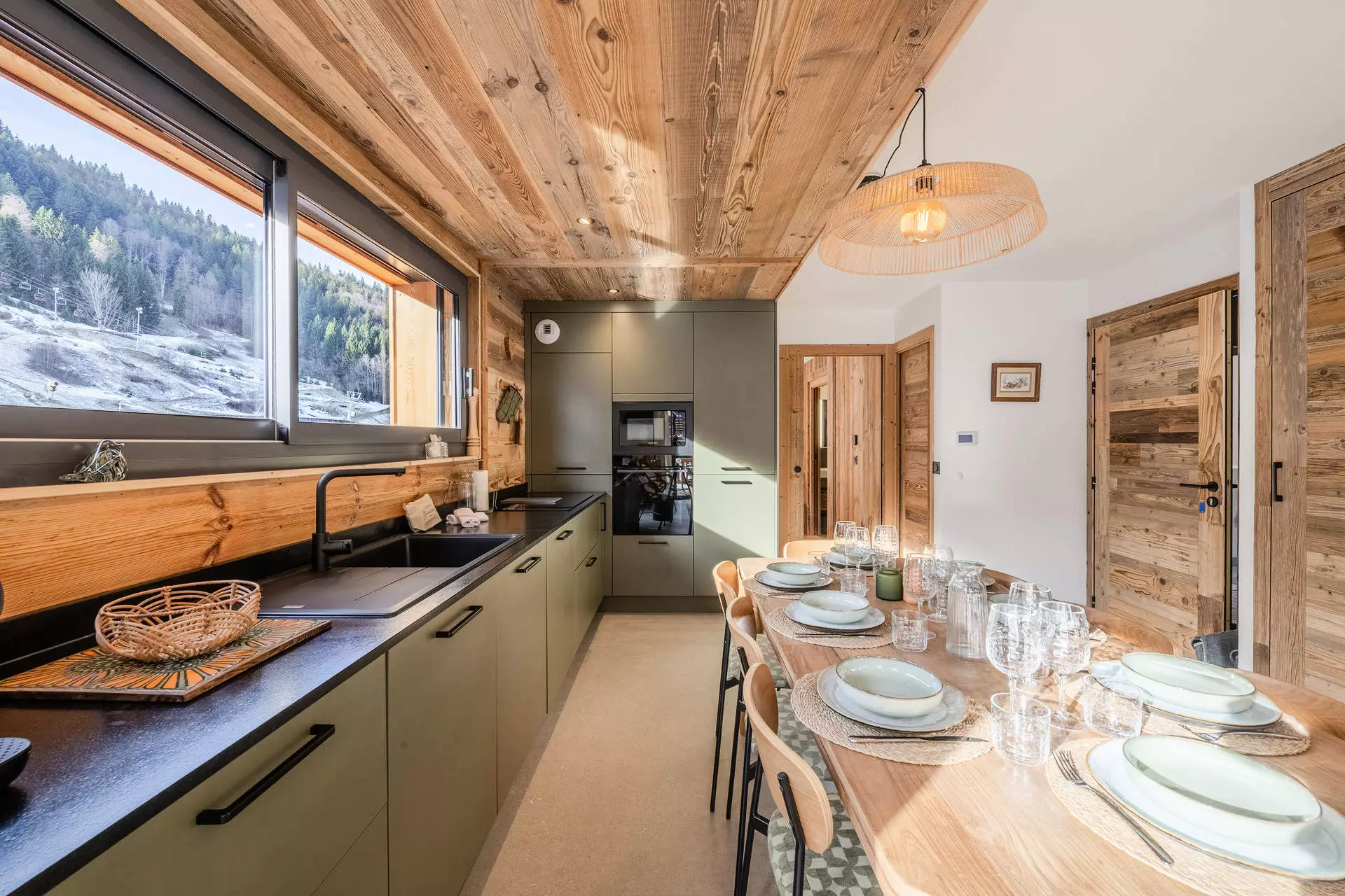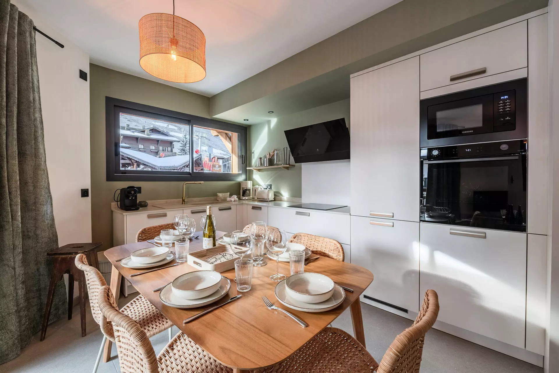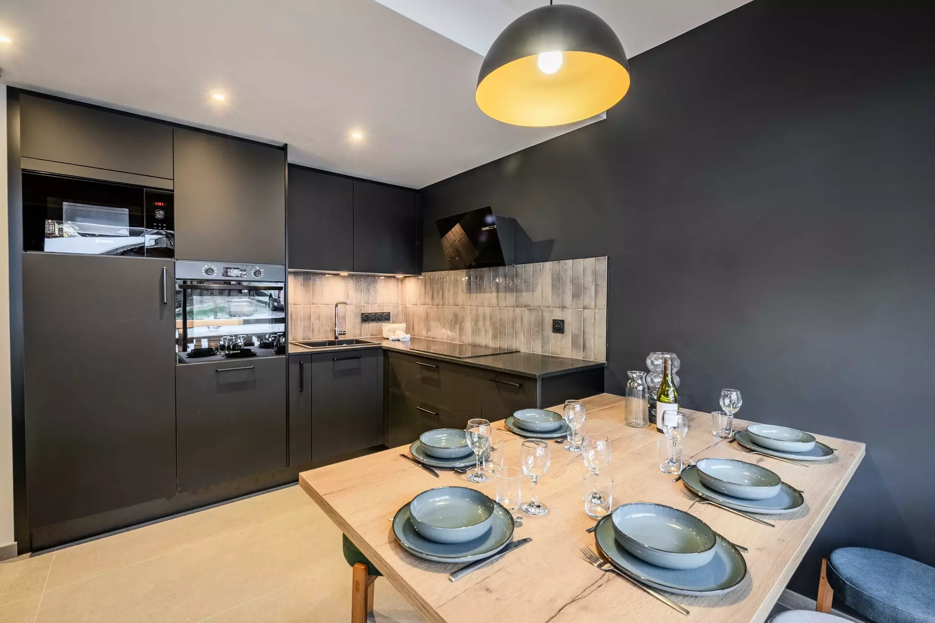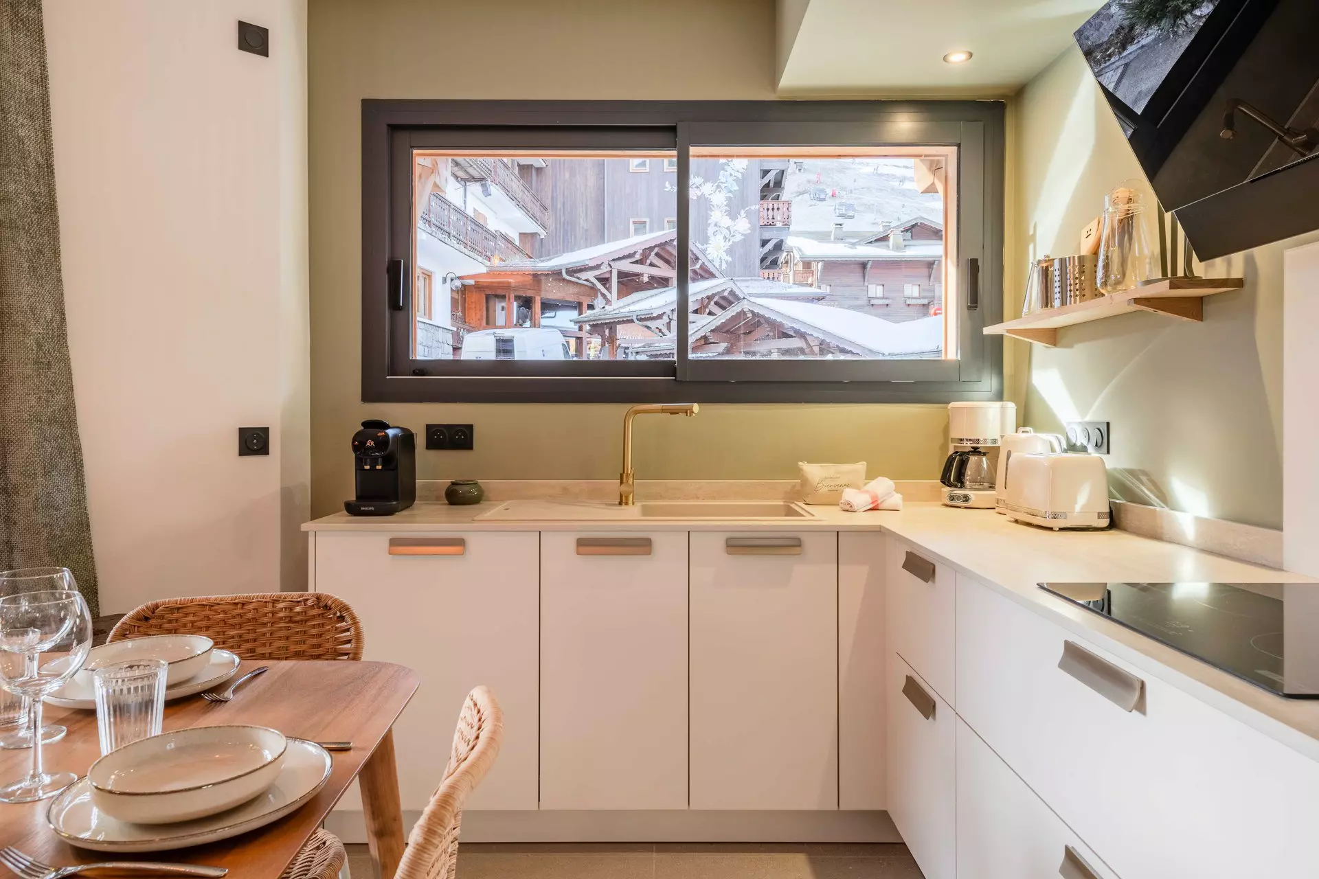 - Cuisine ouverte entièrement équipée (grille-pain, bouilloire, cafetière à filtre et cafetière Nespresso, plaques inductions, four, micro-onde, lave vaisselles) avec espace repas