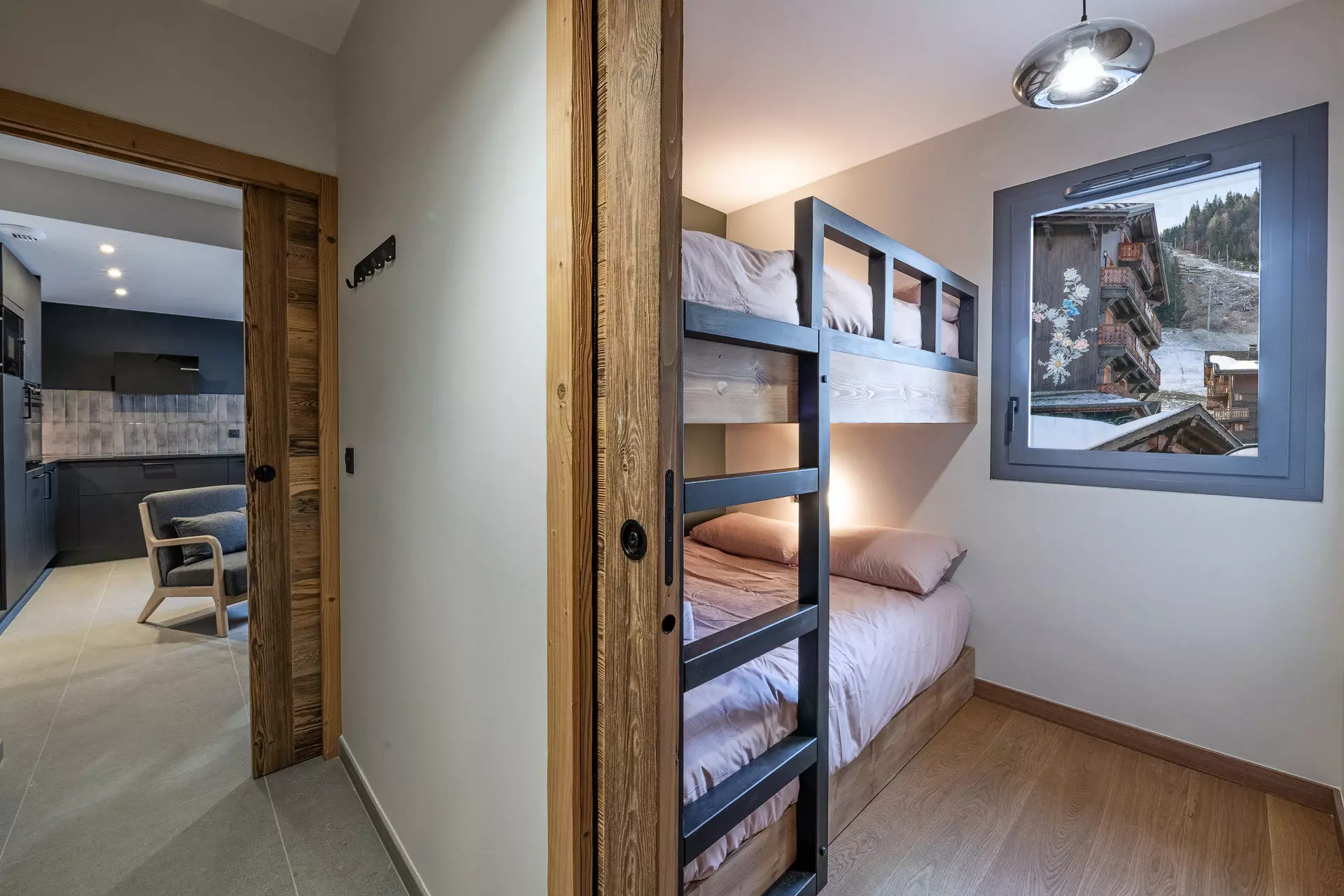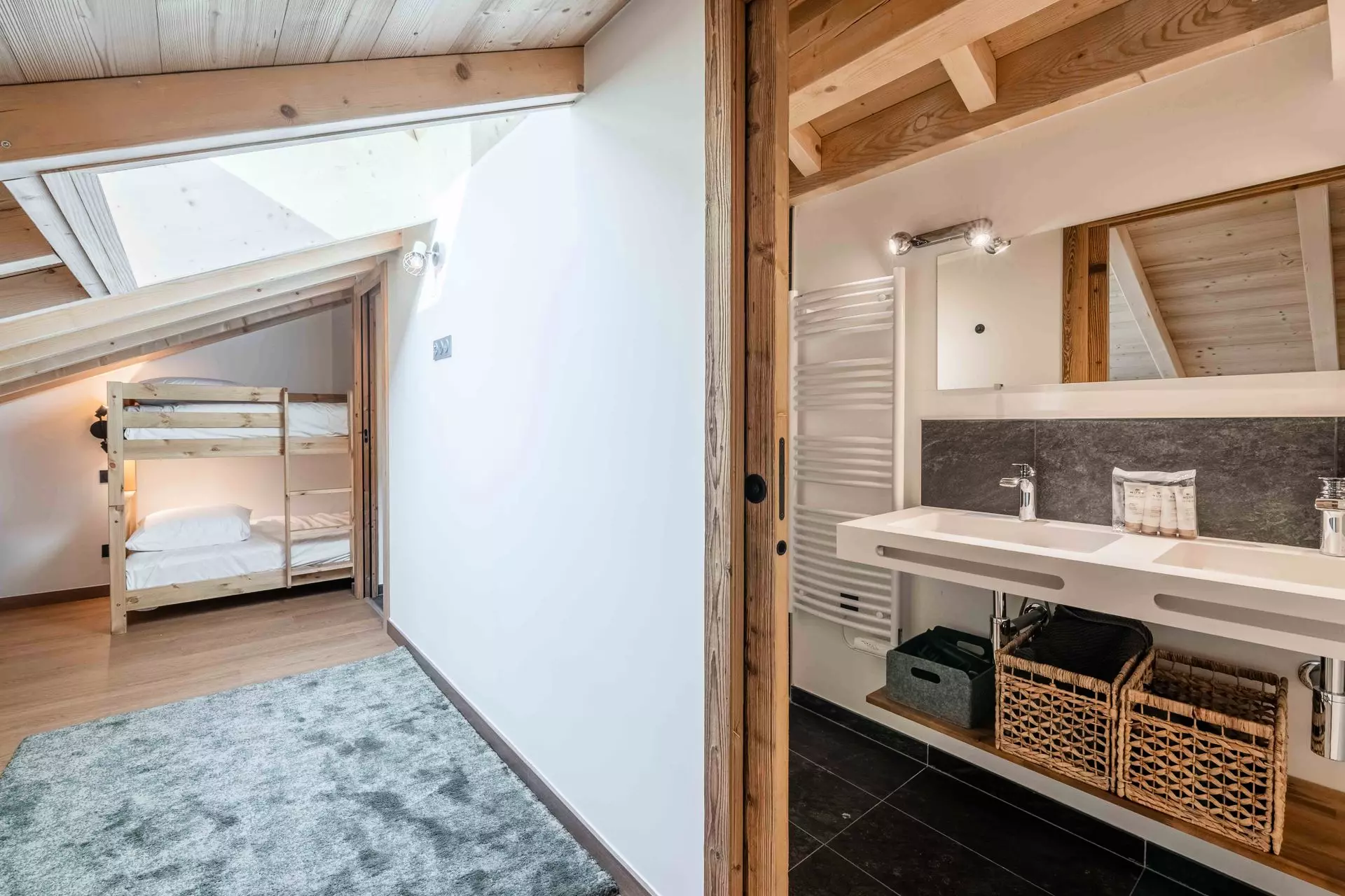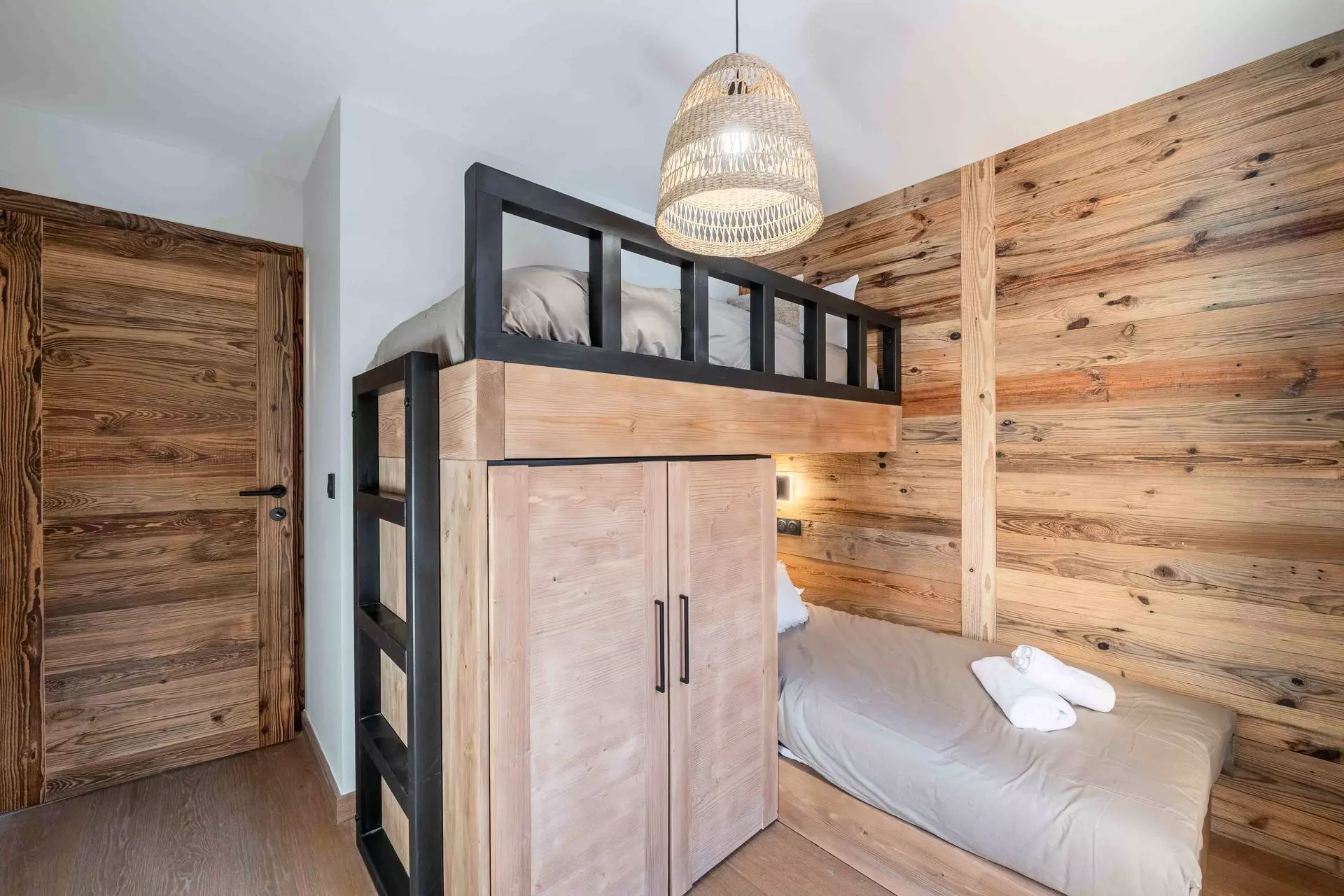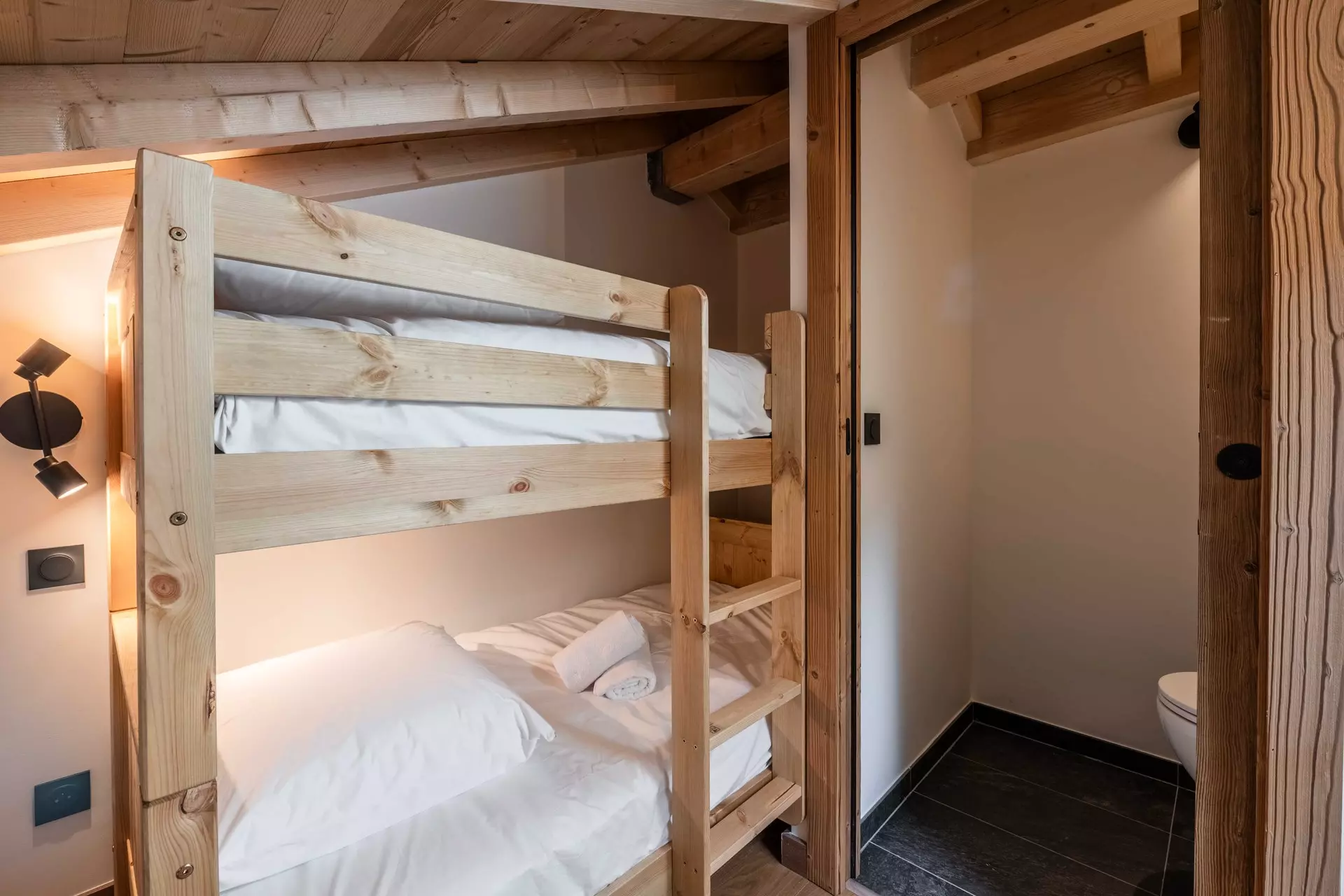 - Chambre 2 : 1 lit double superposés (140x200cm) avec rangement en suite avec salle de douche et WC