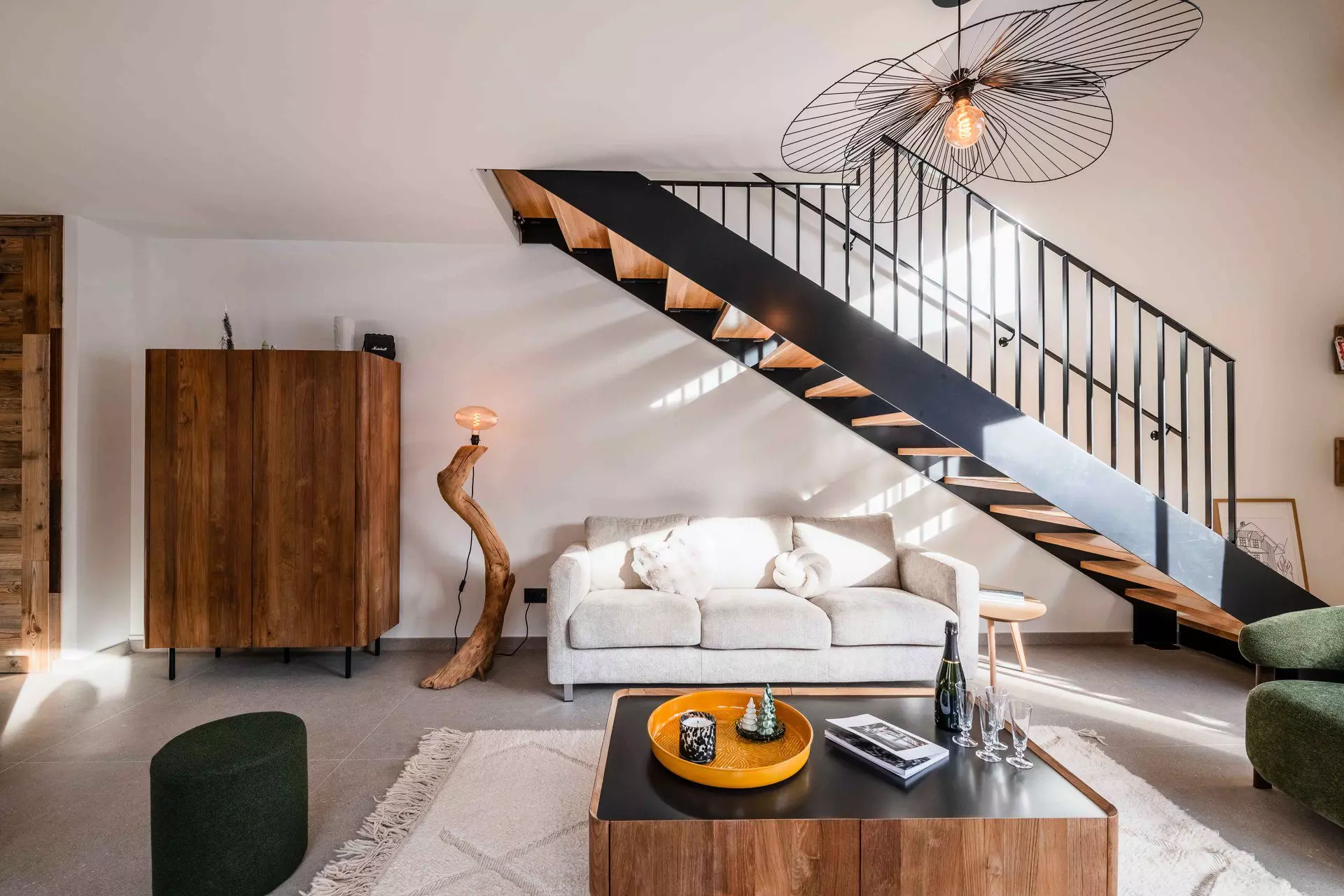 - Séjour comprenant un canapé moderne, des fauteuils et une TV