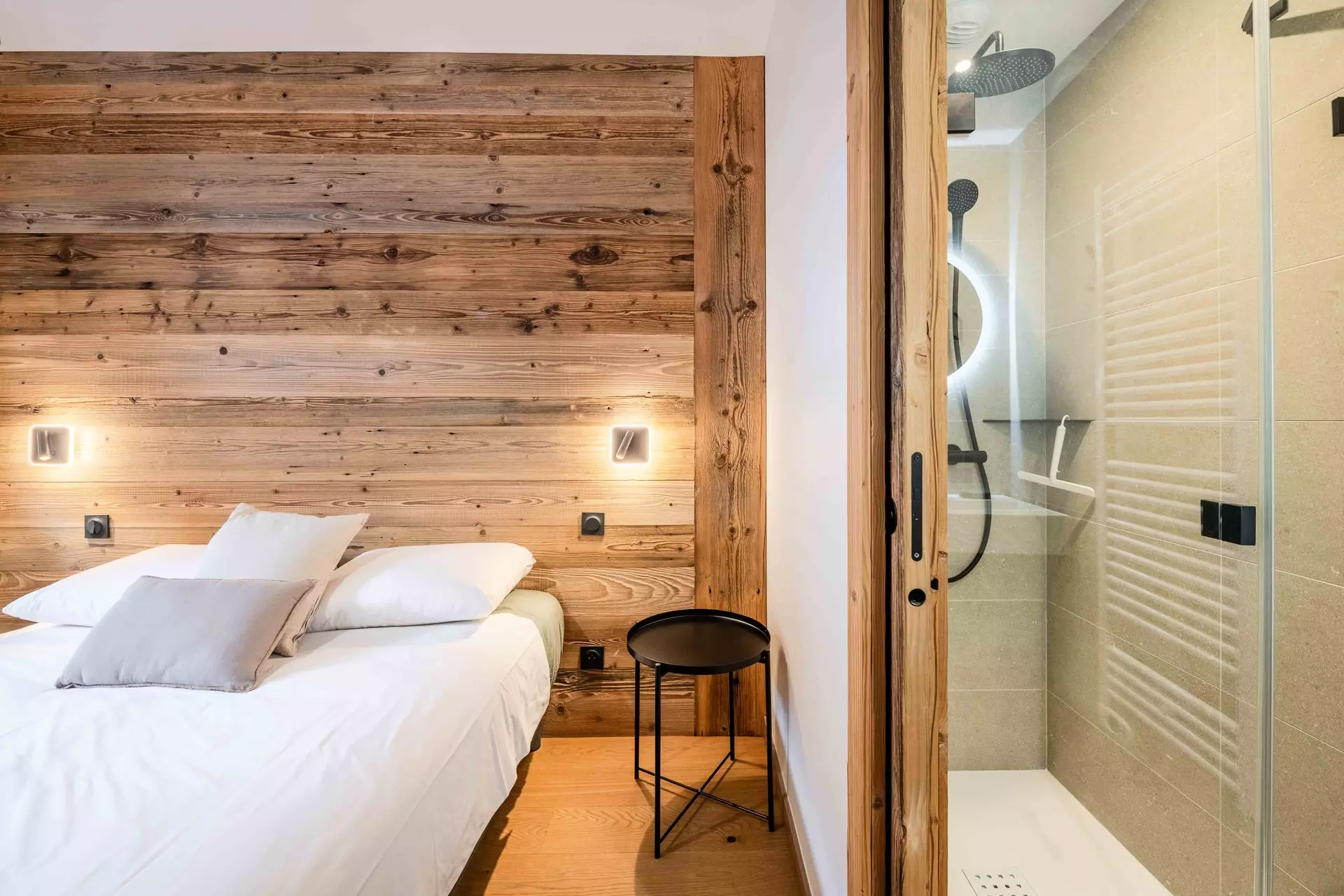 - Chambre 1 :1 lit double (160x200cm) avec rangement en suite avec salle de douche