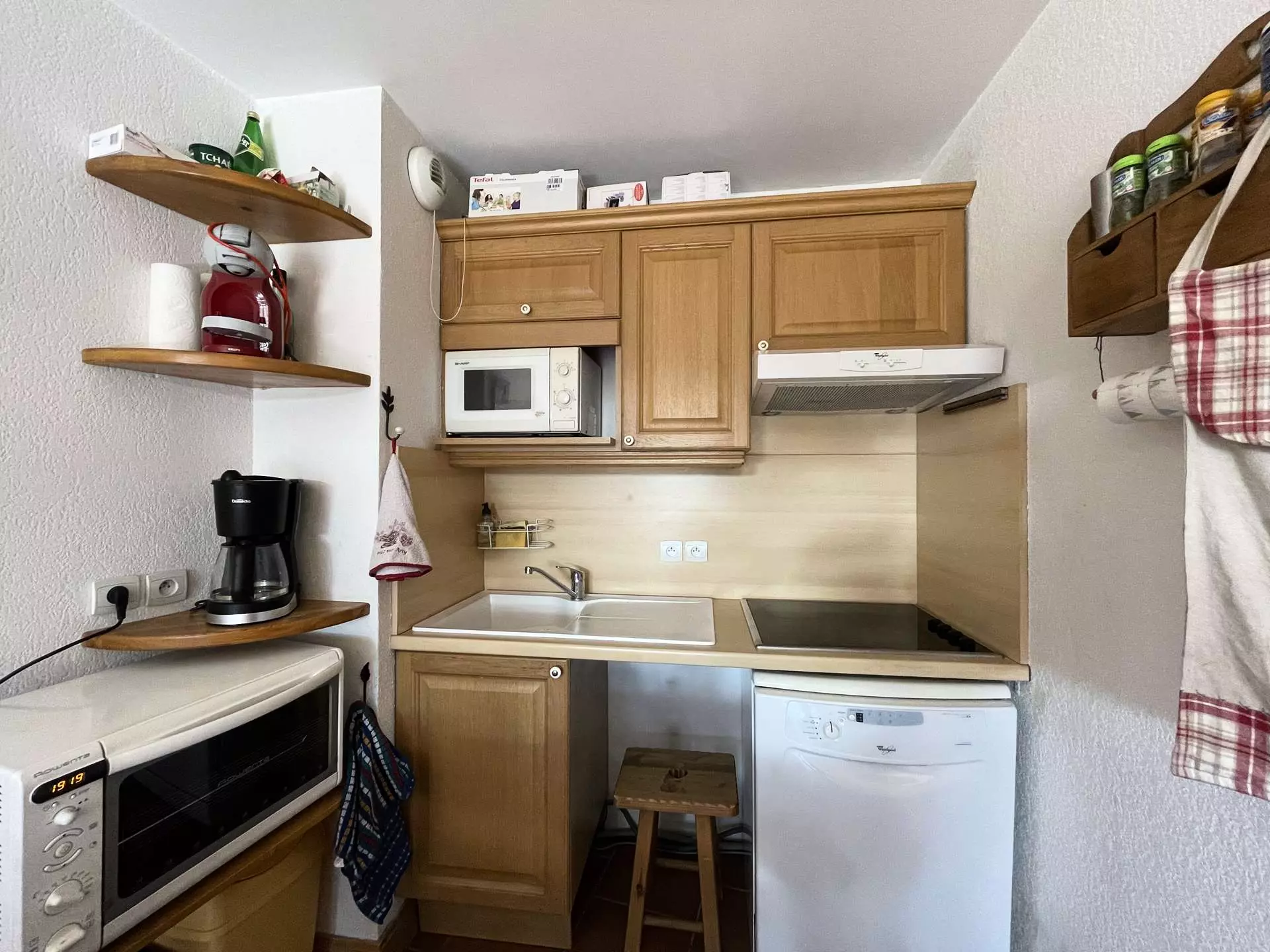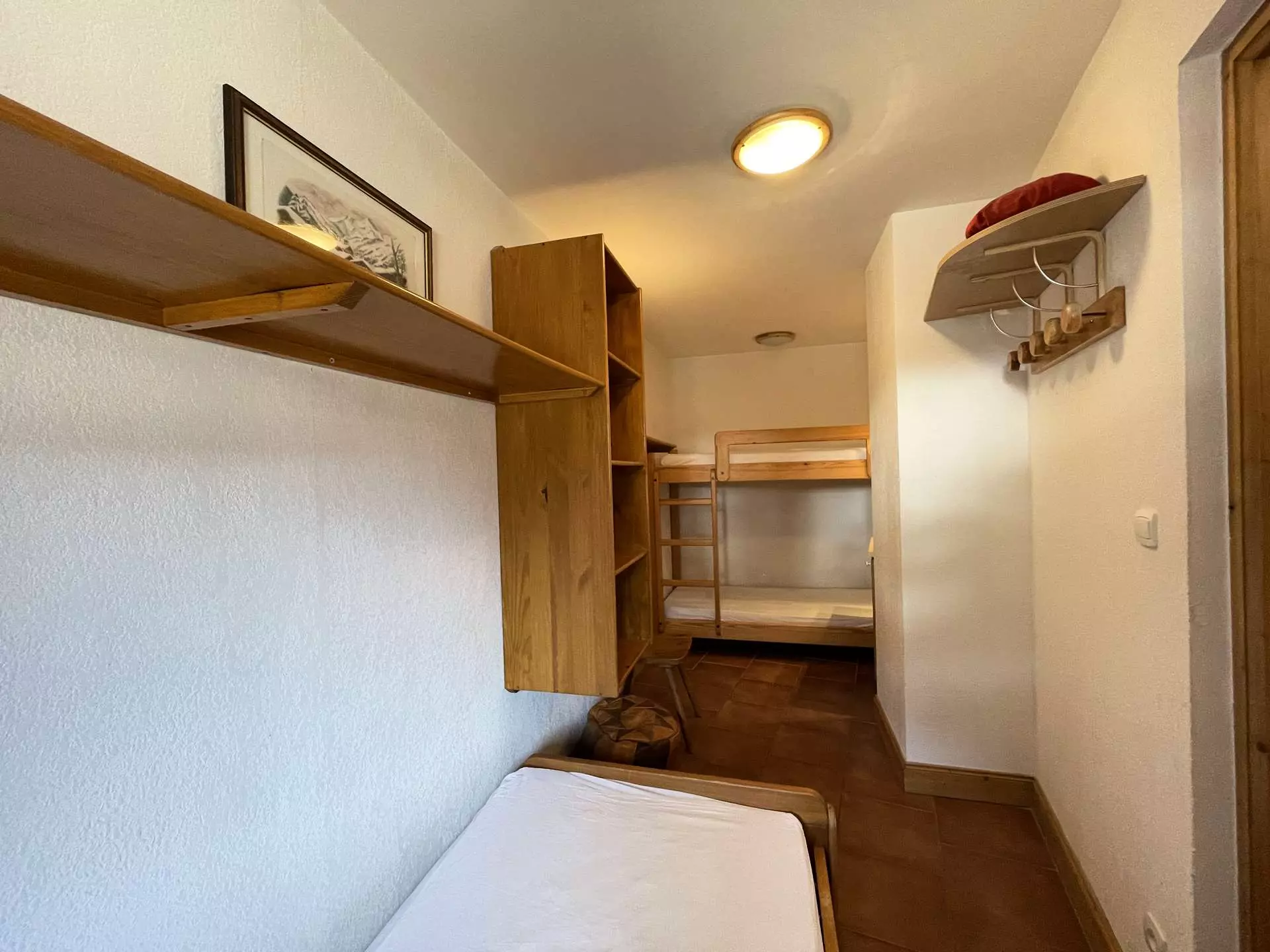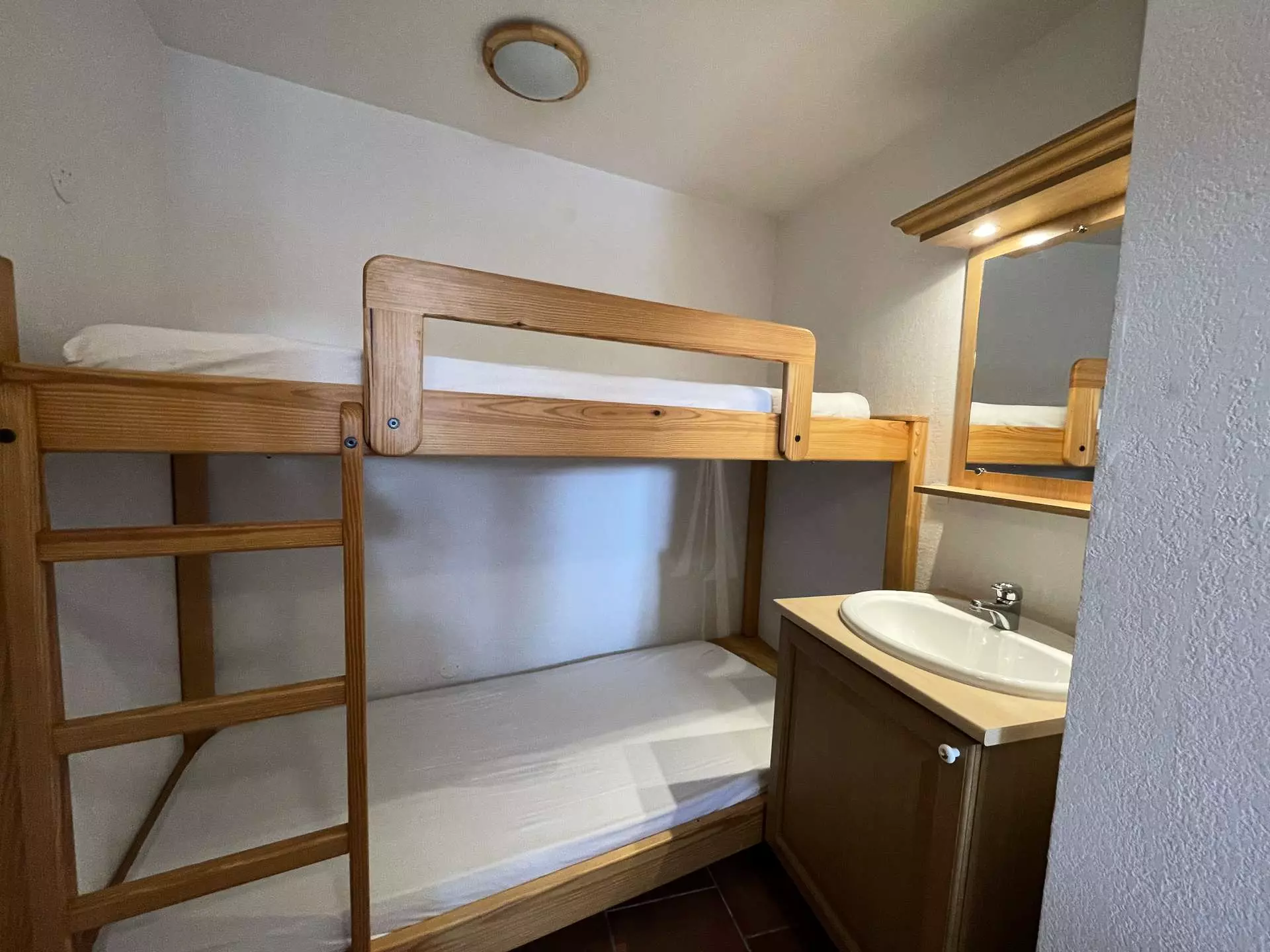 Cet appartement de vacances, situé au premier étage d'une résidence de standing, est composé d'un séjour/salle à manger avec un canapé lit deux places, un coin cuisine équipé, une petite chambre avec deux lits superposés et un lit simple avec un coin lavabo, une chambre avec lit double, une salle d'eau avec douche ainsi qu'un WC indépendant.