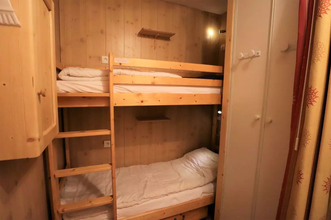 Situation idéale : à pied au ski et au village - résidence de 70 appartements du Val Blanc II avec piscine l'été - entrée cabine avec 2 lits superposés 80- séjour ouest donnant sur un grand balcon (table et chaises de jardin). Lit mural escamotable (140x190) dans le séjour - TV et petit coin repos - kitchenette tout équipée (lave vaisselle, four, micro ondes, réfrigérateur, plaque de cuisson), espace repas convivial - SdB - WC ind. Résidence avec Ascenseur et piscine l'été*.