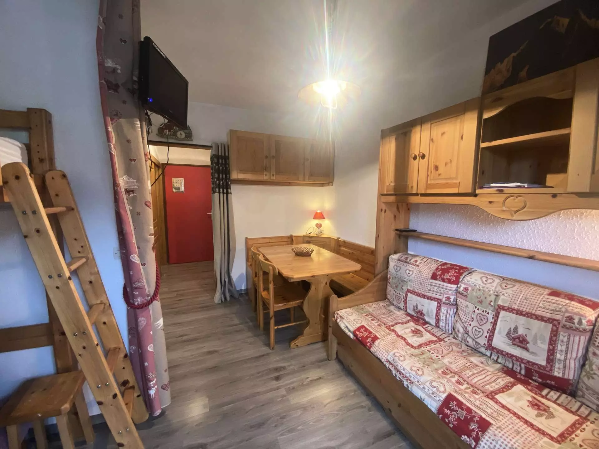 Appartement SUD très fonctionnel de 27m² AVEC BALCON - 1er étage avec ascenseur- Situation idéale pour vous rendre à pied au ski et au village - résidence de 70 appartements du Val Blanc II avec piscine collective l'été *- Entrée - séjour avec convertible 2 pers. - kitchenette équipée (Lave-vaisselle) - chambrette fermée avec 1 lit 2 personnes et 1 lit 1 personne au-dessus -TV. Enfants bienvenus (lit bb)