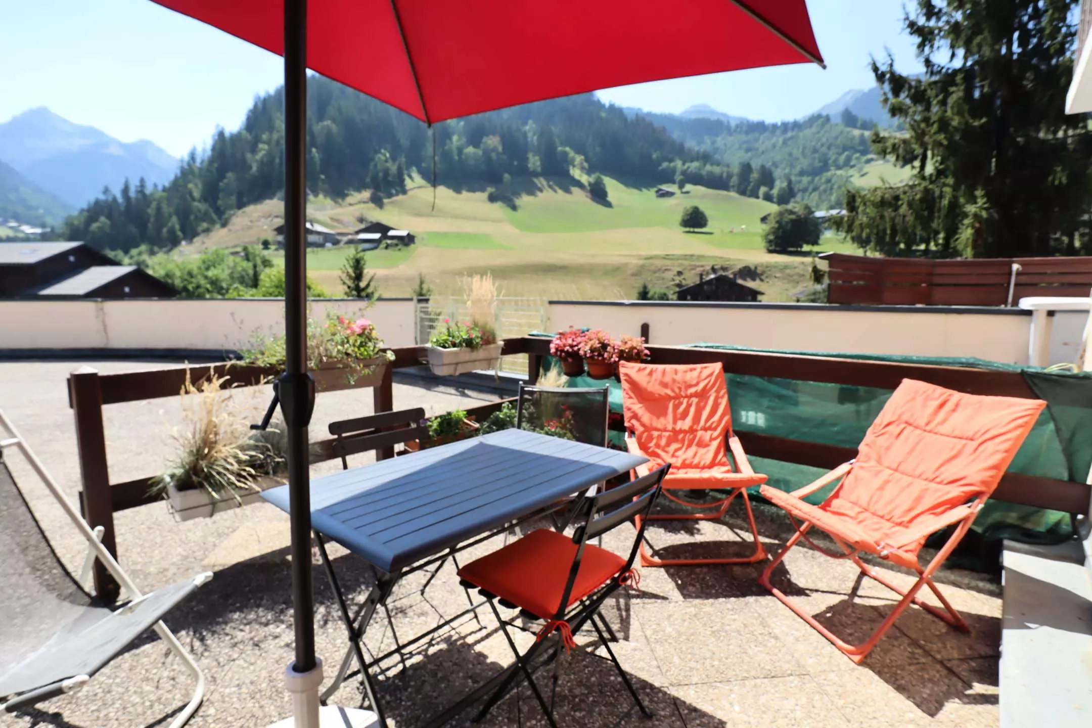 A l'occasion dégustez-les sur la terrasse de 6 m² orientée plein Est avec vue sur le village et les 2108 m de la Roche Parstire.