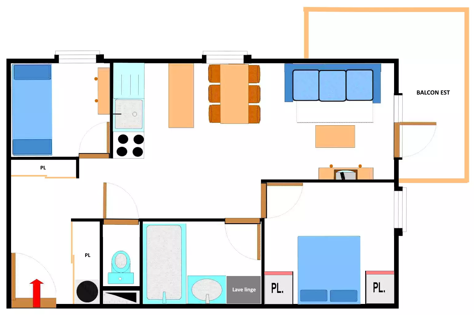 Exposition : Est et Sud avec balcon aménagé et belle vue dégagée