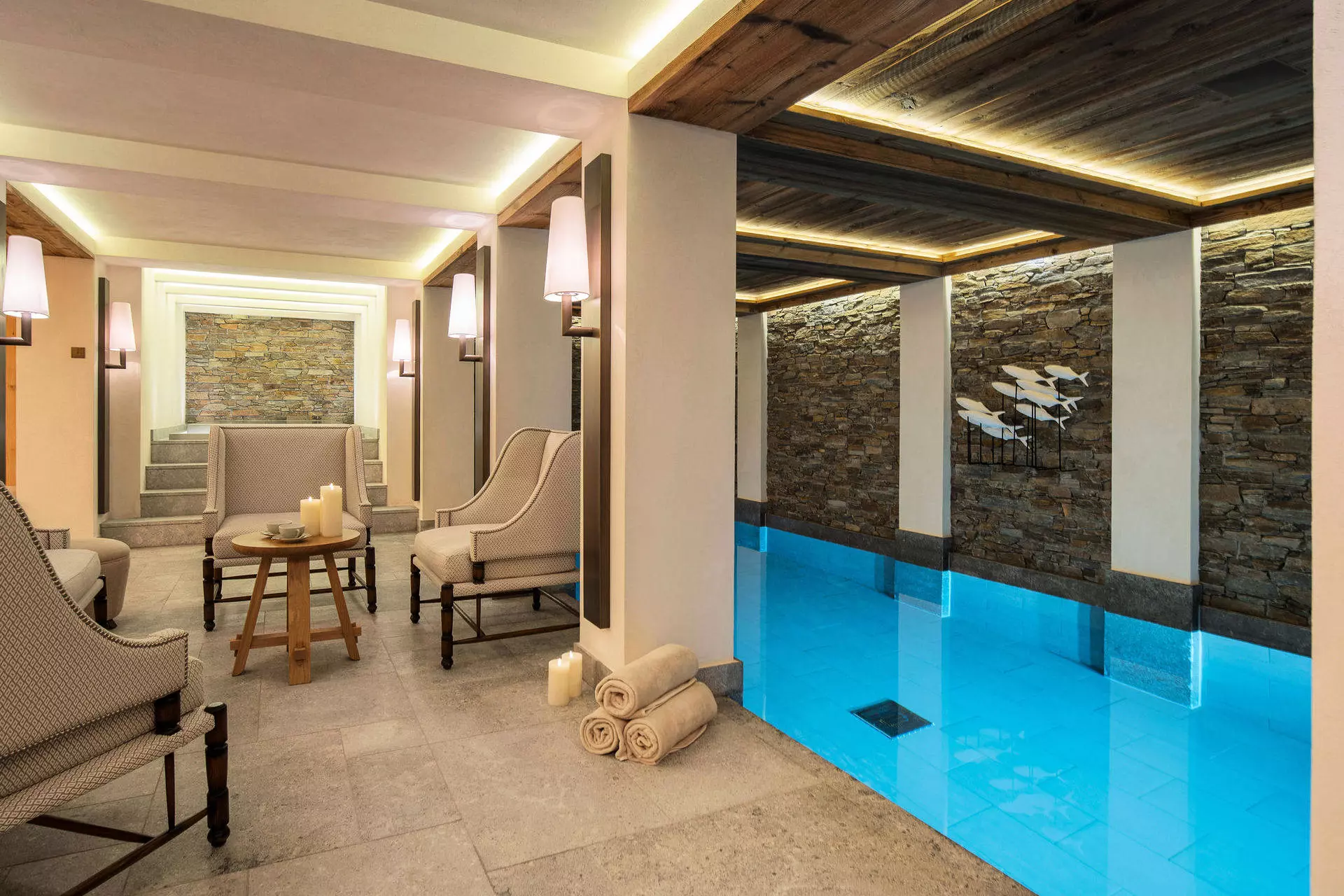 - Piscine, bains à remous avec espace détente et bar