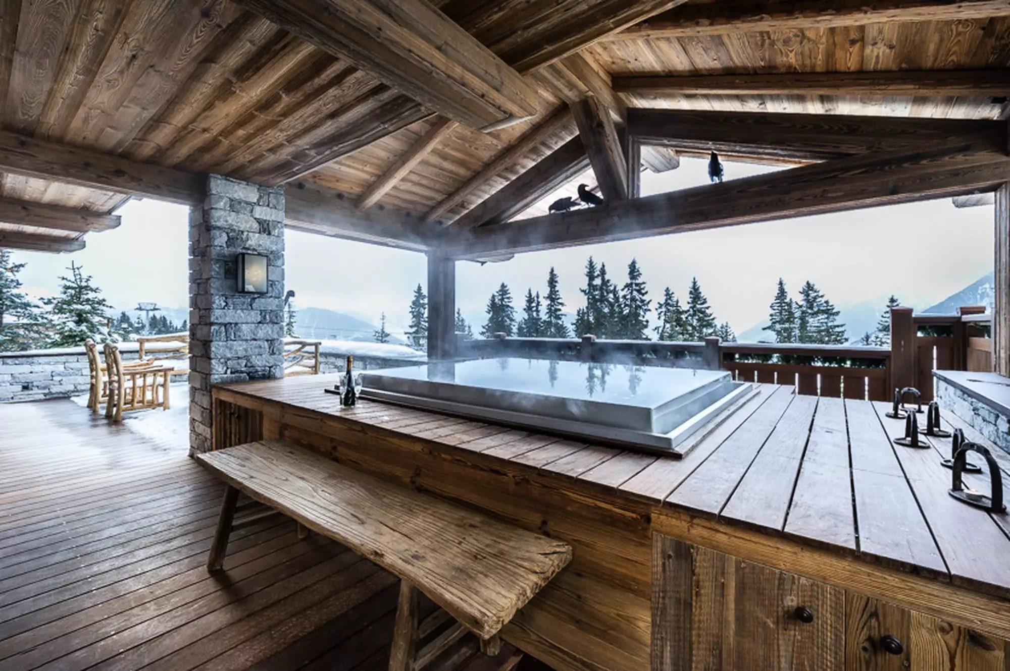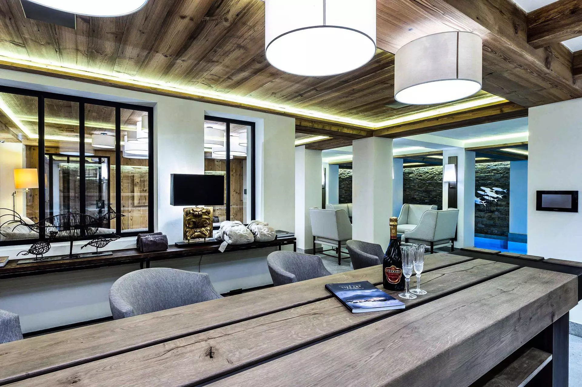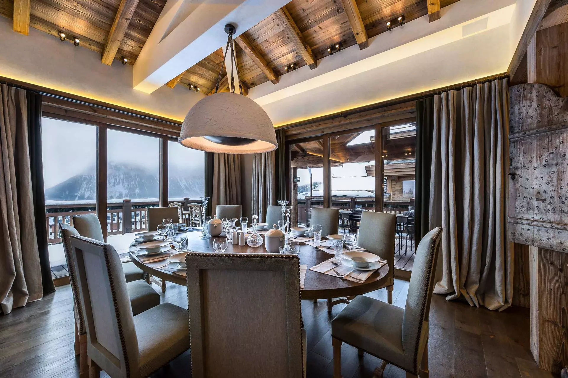 C'est l'un des plus grands chalets de Courchevel, ces quelques 787m2 peuvent acceuilli jusqu'à 12 personnes. Service demi pension inclus pour profiter du petit déjeuner sur le balcon. Comprent plusieurs espaces de bien-être, tel qu'une piscine, un spa et une salle de sport.