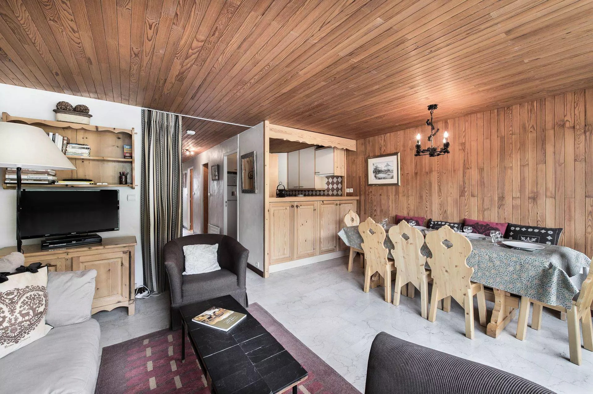 - Séjour : canapé, TV écran plat, lecteur Blue-ray