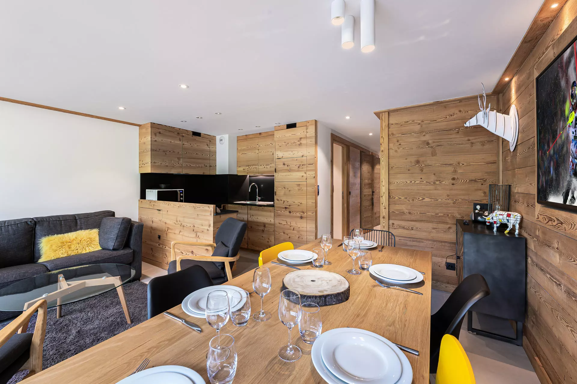 Appartements de 60m², pouvant acceuillir jusqu'à 6 personnes. 2, chambres avec lits simples pouvant être attaché, plus 2 lits superposés. Espace de vie comprennat d'amples canapés, élairée par grande baie vitrée. A deux pas des pistes, des remontées mécaniques et de l'Ecole de SKi Français.