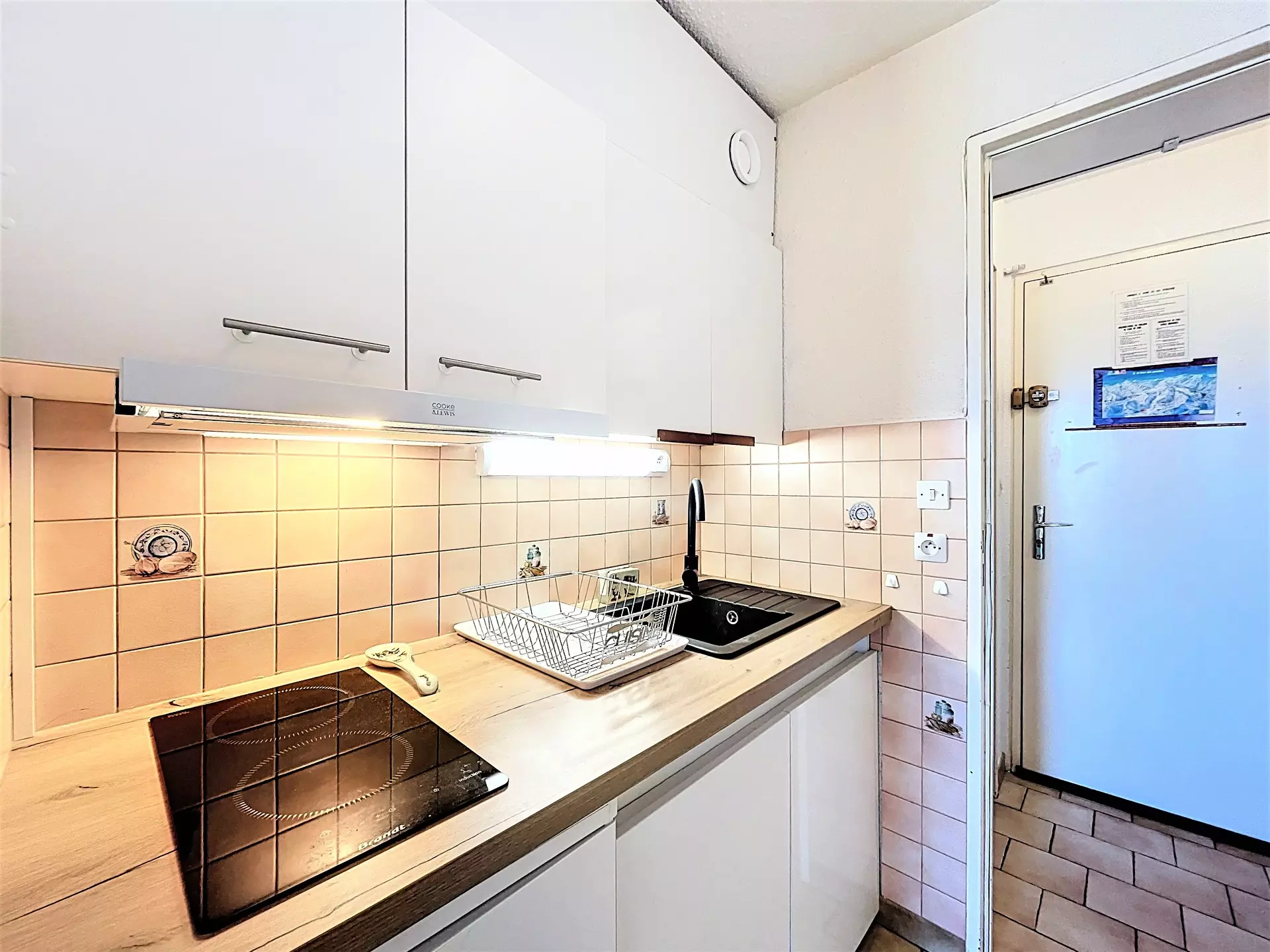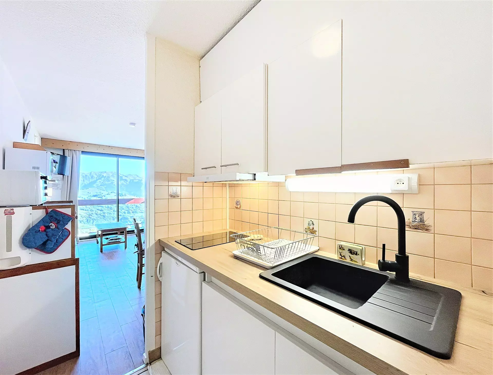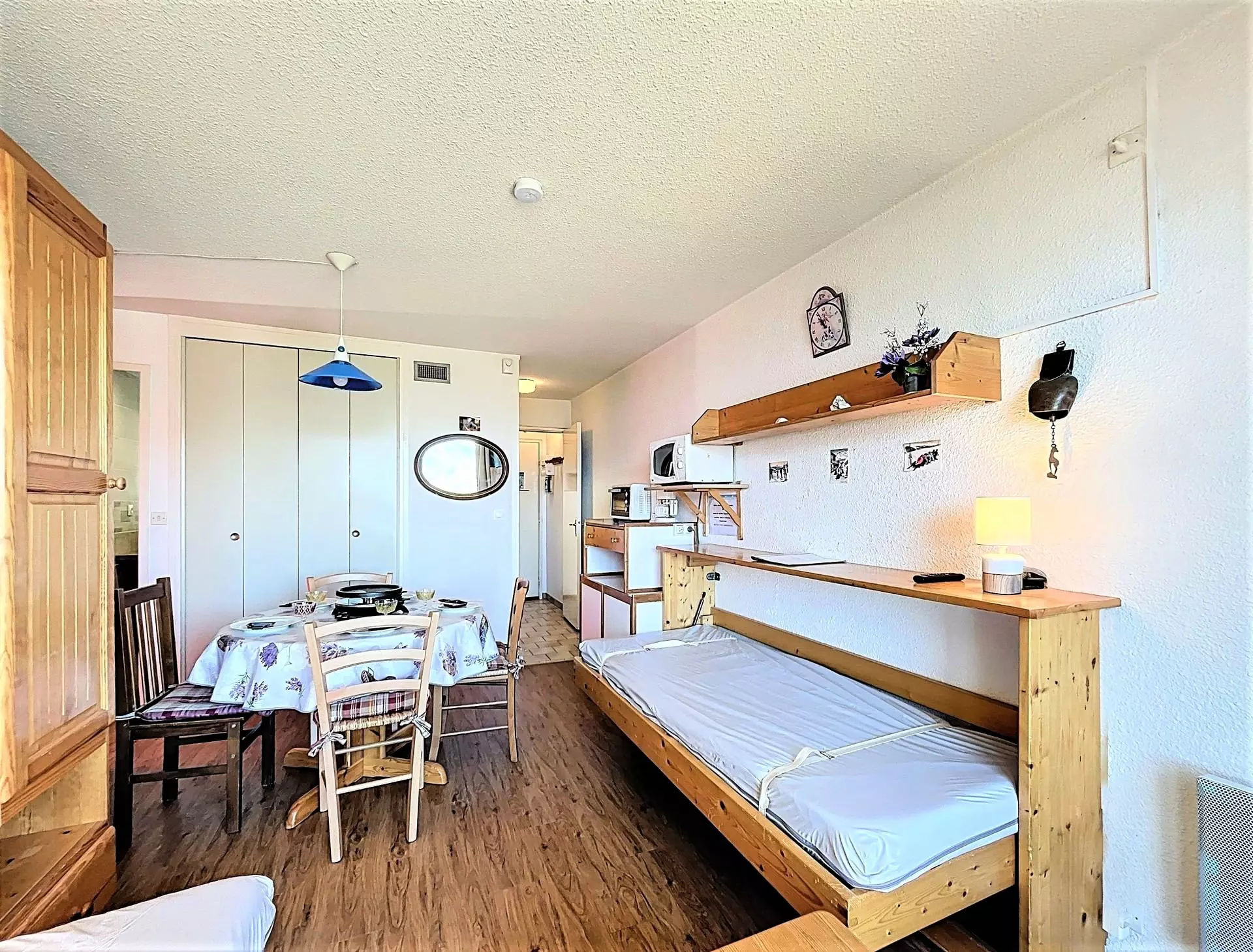 Joli Studio de 28m², pour 4 adultes et un enfant, Résidence Lunik, au 13 ème étage, Balcon exposé nord, vue montagnes et proche du Télésiège La Voie Lactée.