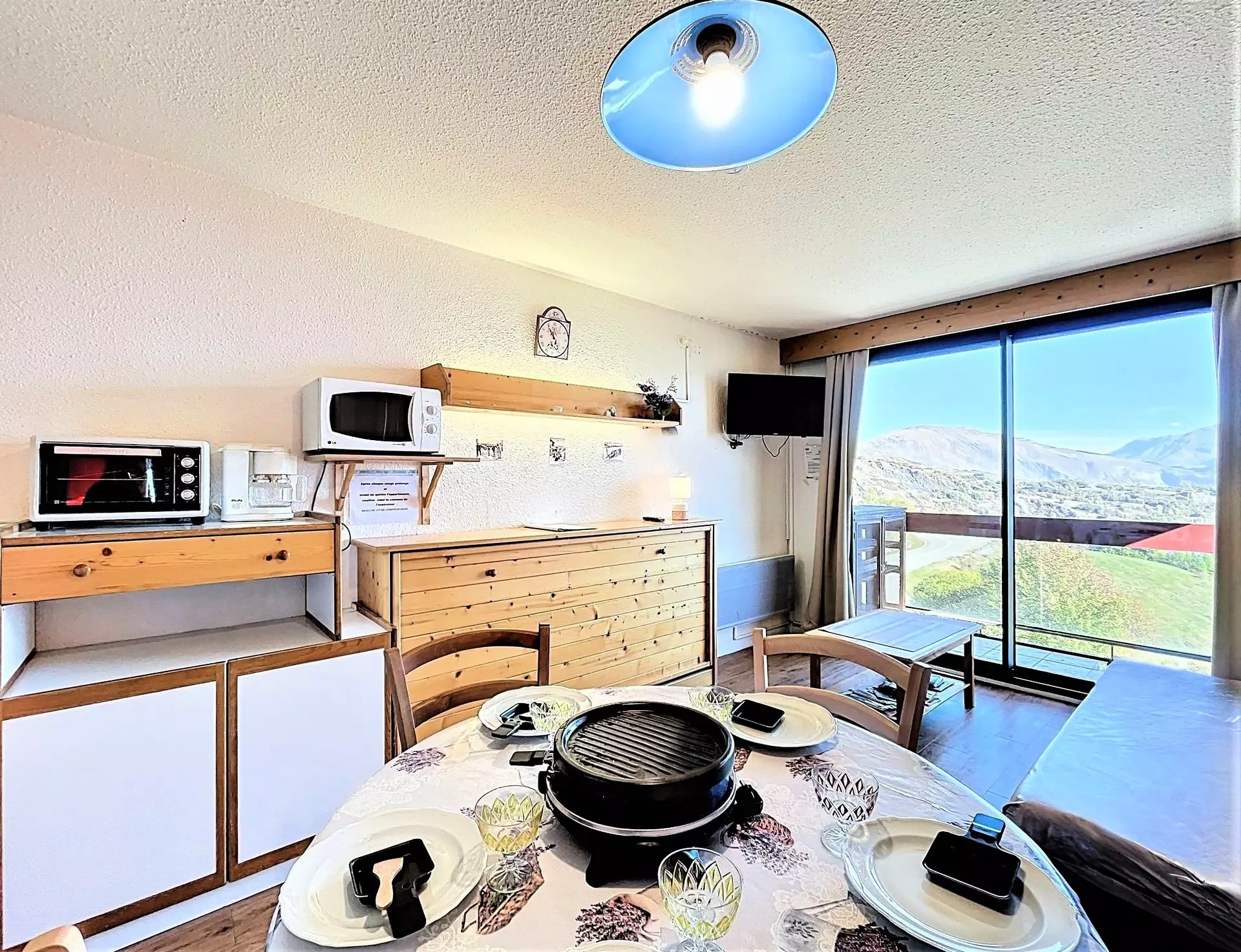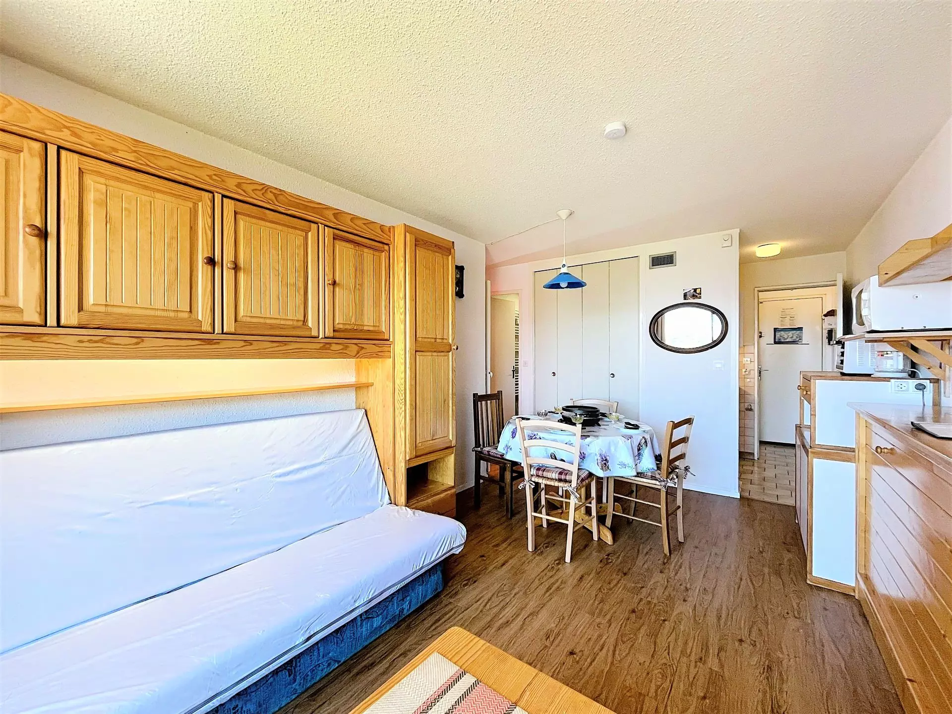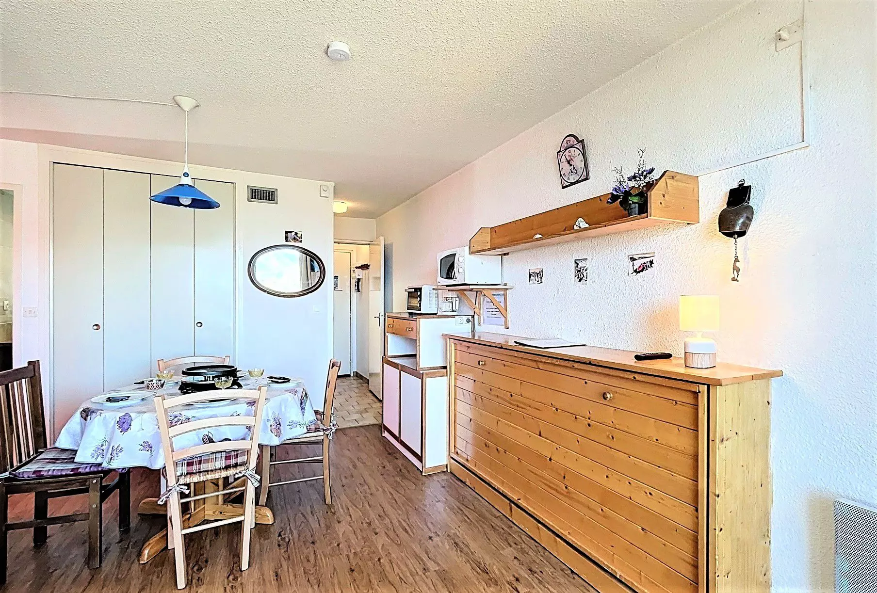 Joli Studio de 28m², pour 4 adultes et un enfant, Résidence Lunik, au 13 ème étage, Balcon exposé nord, vue montagnes et proche du Télésiège La Voie Lactée.