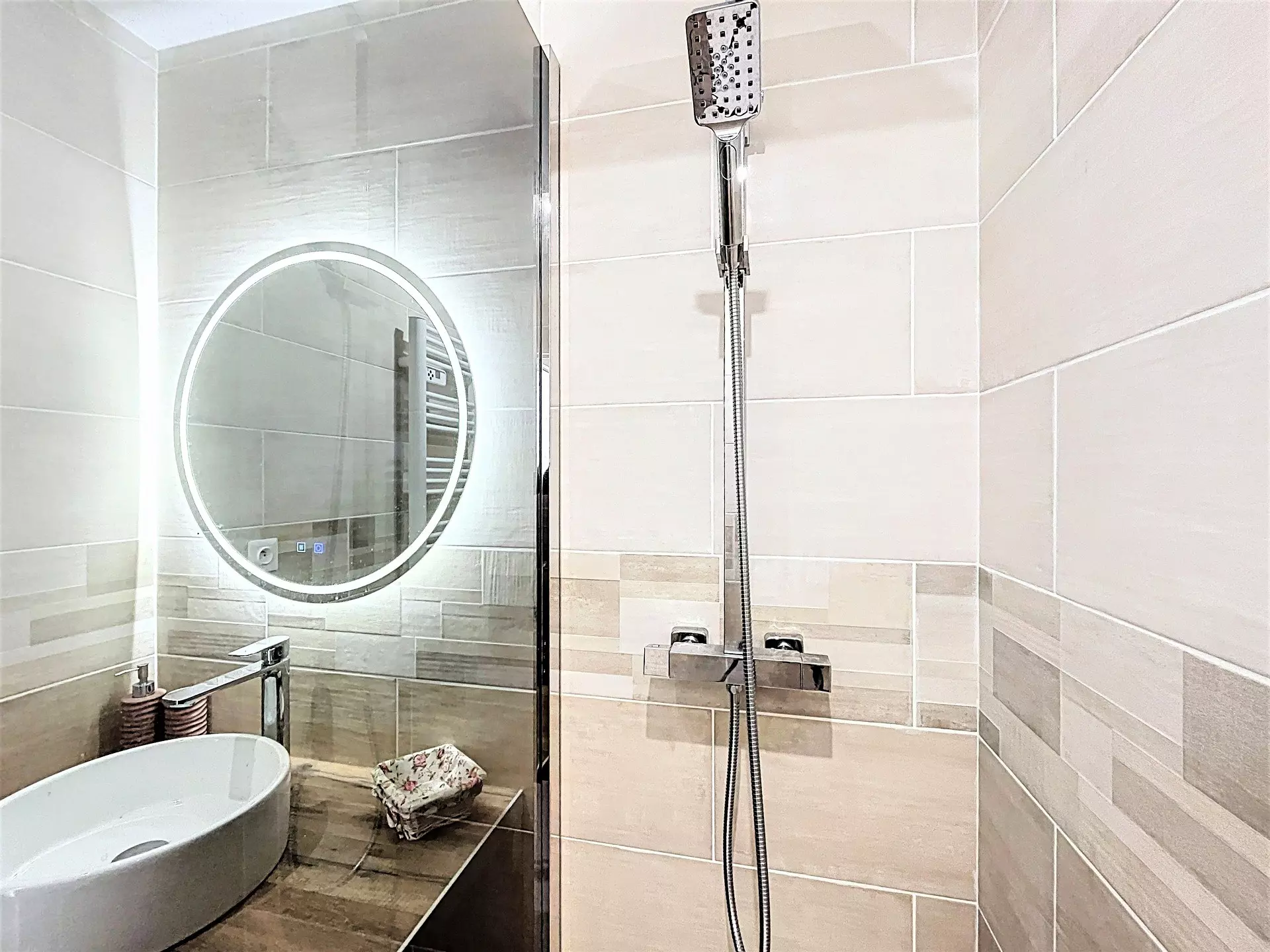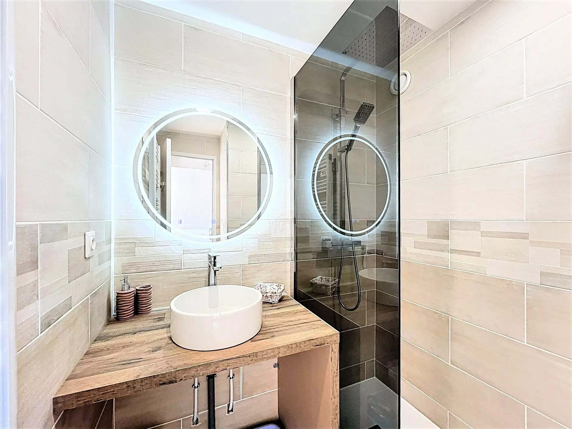 La salle de bain entièrement rénovée offre une belle douche à l'italienne et les toilettes sont séparées.