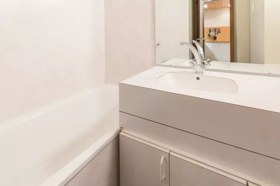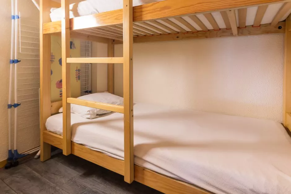 Ce studio divisible avec une vue orientée au sud sur les pistes se compose d'une kitchenette entièrement rénovée équipée (de plaques vitrocéramiques, four, cafetière, lave-vaisselle, micro-ondes, et frigo table top), d'une salle de bain avec baignoire et WC séparé. Le coin nuit dispose de deux banquettes lit simple et le coin séjour repas dispose de deux lits simples. Ces deux pièces peuvent être séparées par une cloison coulissante pour profiter de deux coins nuits distincts.