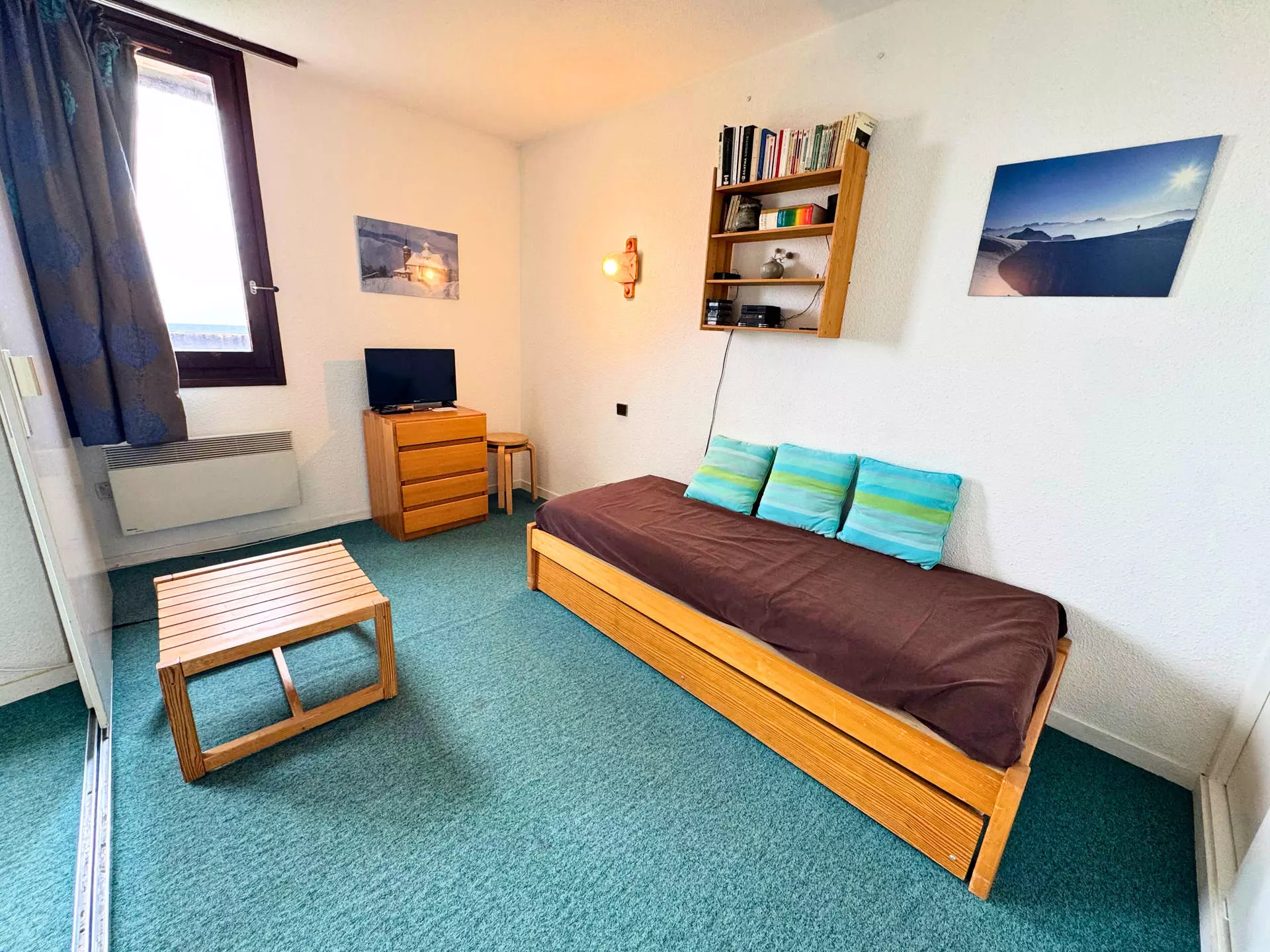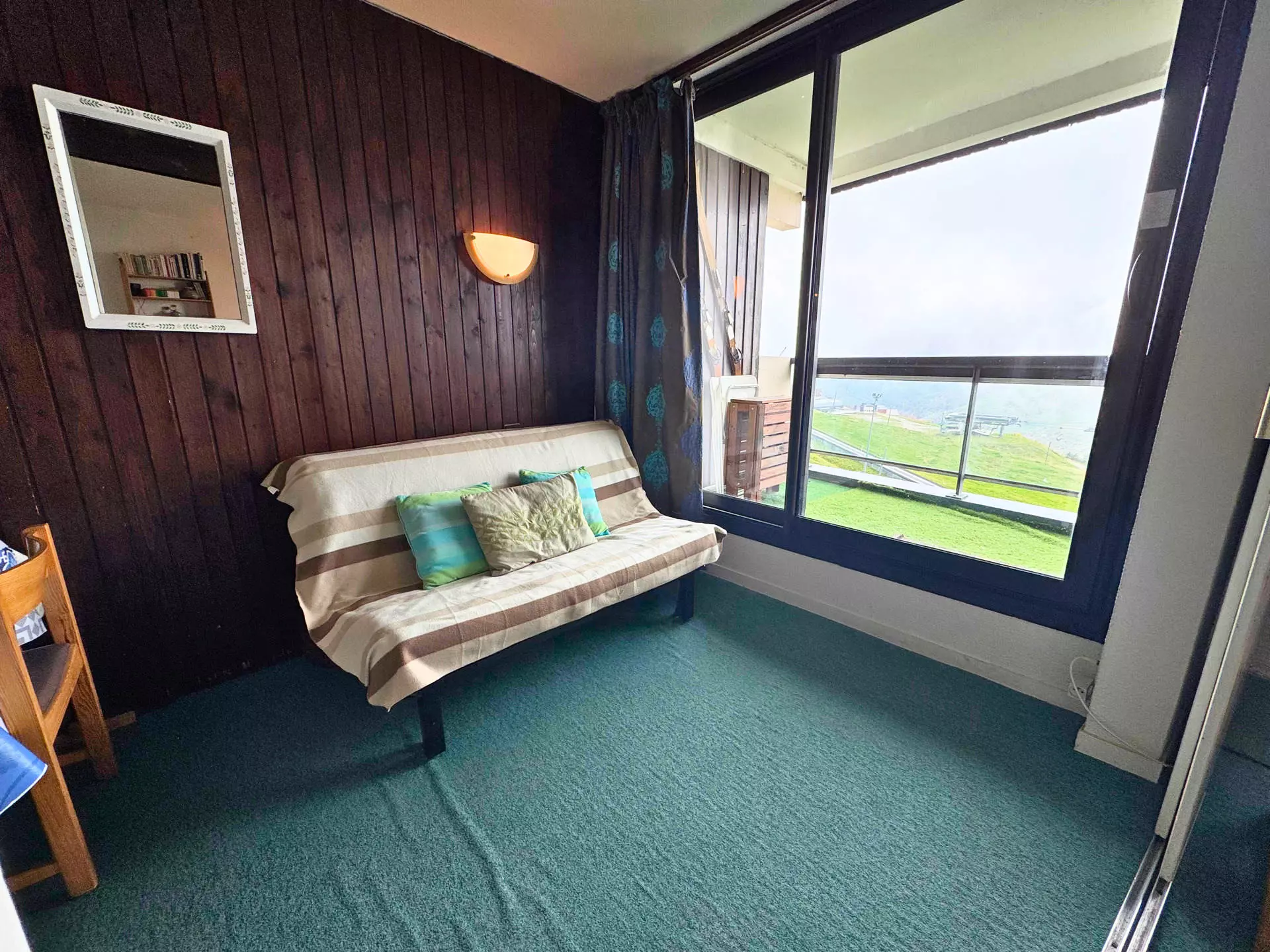 Résidence Armoise (N°24), studio divisible pour 4 personnes, 28m², au 2ème étage par ascenseur, petit balcon (type loggia) exposé Sud-Ouest, vue sur la montagne